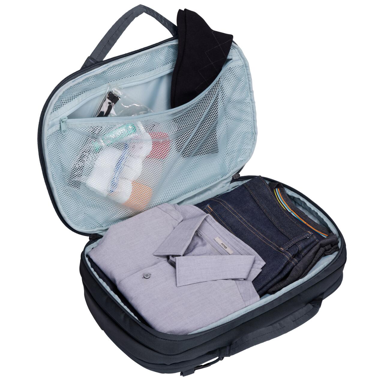 Datorită designului hibrid, această geantă Thule pentru călătorie poate fi purtată în mână, pe umăr sau ca rucsac, în funcție de situație. Volumul se poate extinde de la 15L la 23L, ceea ce o face ideală atât pentru naveta zilnică, cât și pentru călătorii scurte. Materialul rezistent, fermoarele YKK și finisajul rezistent la apă contribuie la o utilizare sigură și confortabilă.