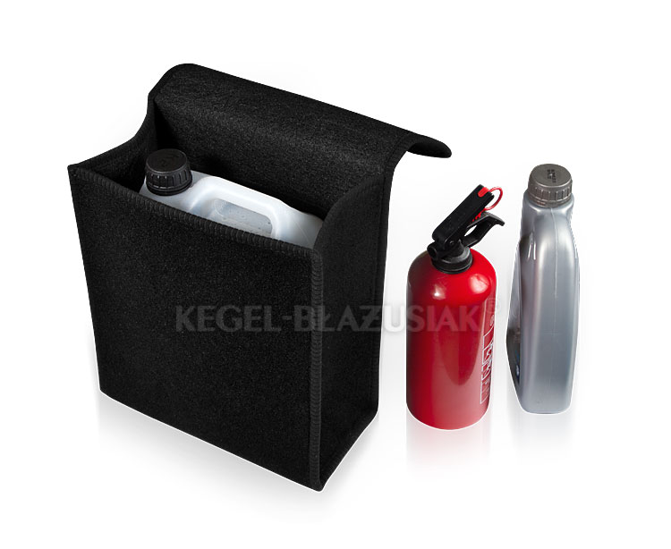 -este o geanta pentru depozitare foarte practica, fabricata din mocheta multristrat foarte rezistenta la care sunt atasate benzi velcro (benzi cu scai) in partea inferioara si pe spate pentru fixarea acesteia de mocheta din portbagaj.