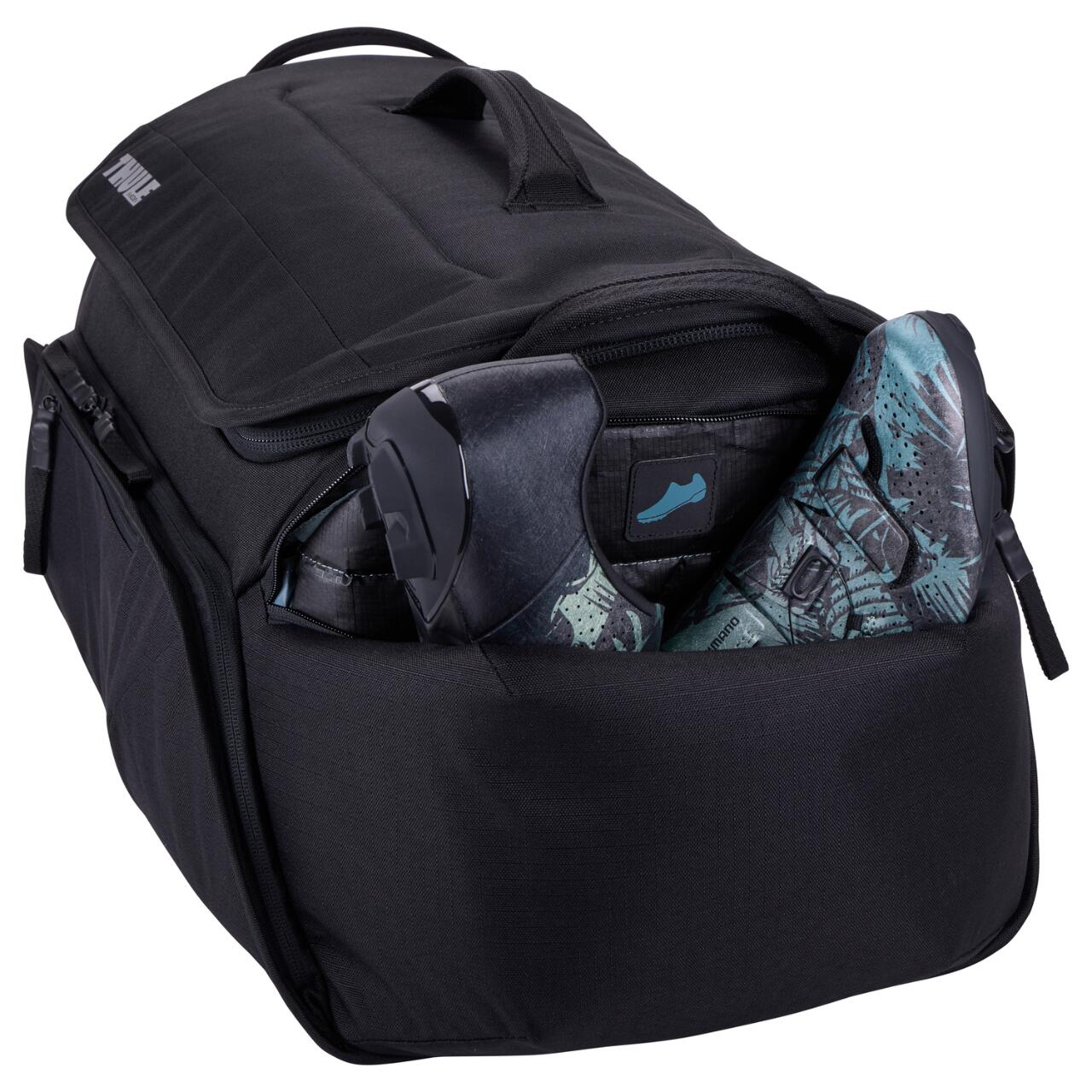 Geantă pentru bicicletă Thule RoundTrip 55L, neagră, organizare echipament