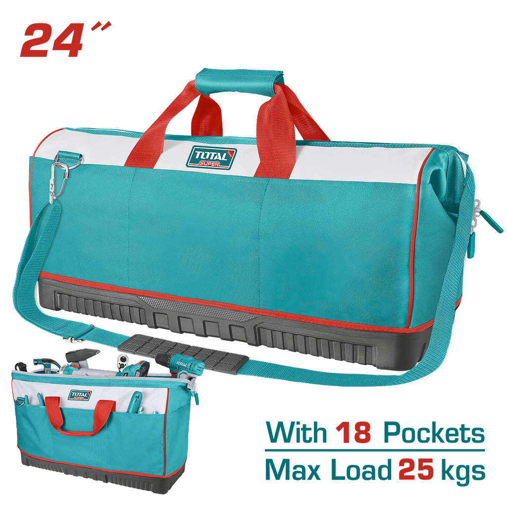 Geantă pentru scule TOTAL 60 cm (24”), cu bază ranforsată și 18 buzunare