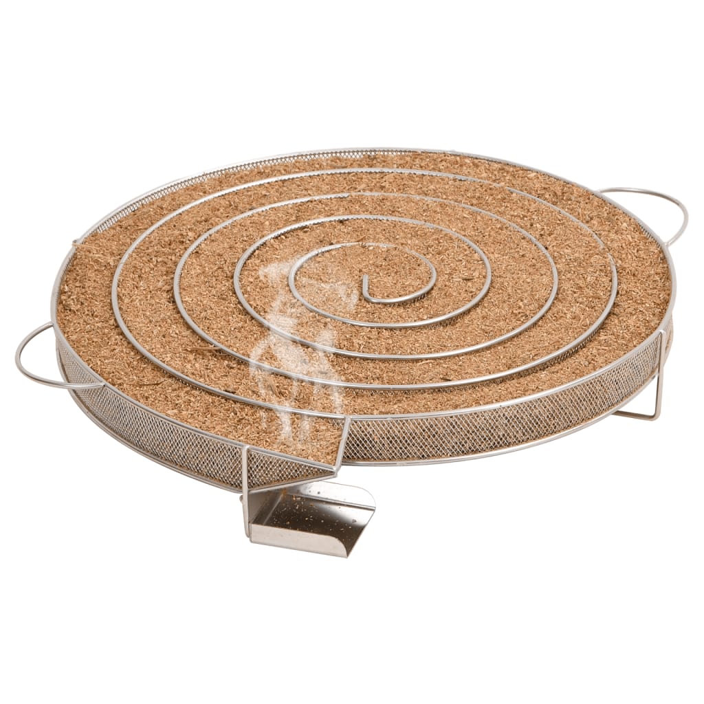 - Construcție solidă cu grilă: Plasa compactă în formă de melc permite așchiilor de fum să ardă uniform și lent timp de până la 20 de ore. Durata depinde în mare măsură de natura lemnului de afumare. Pentru cele mai bune rezultate, se recomandă utilizarea așchiilor cu granulație de 0,5-2,0 mm.