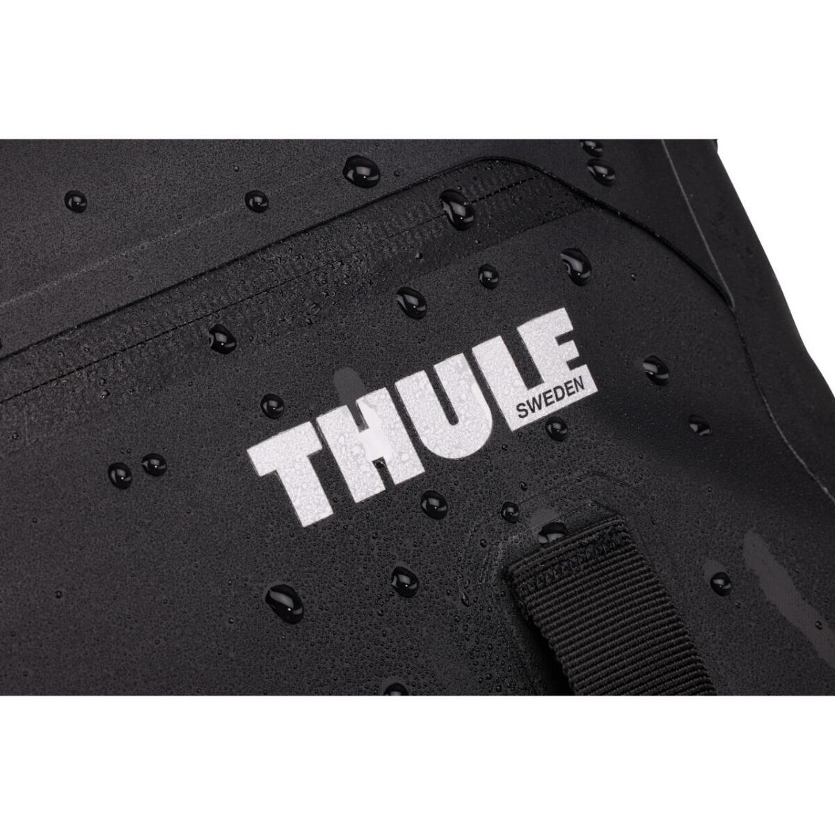 Protejati continutul de ploi abundente sau de stropire cu gradul de impermeabilitate IPX4 al gentii de bicicleta Thule Shield.