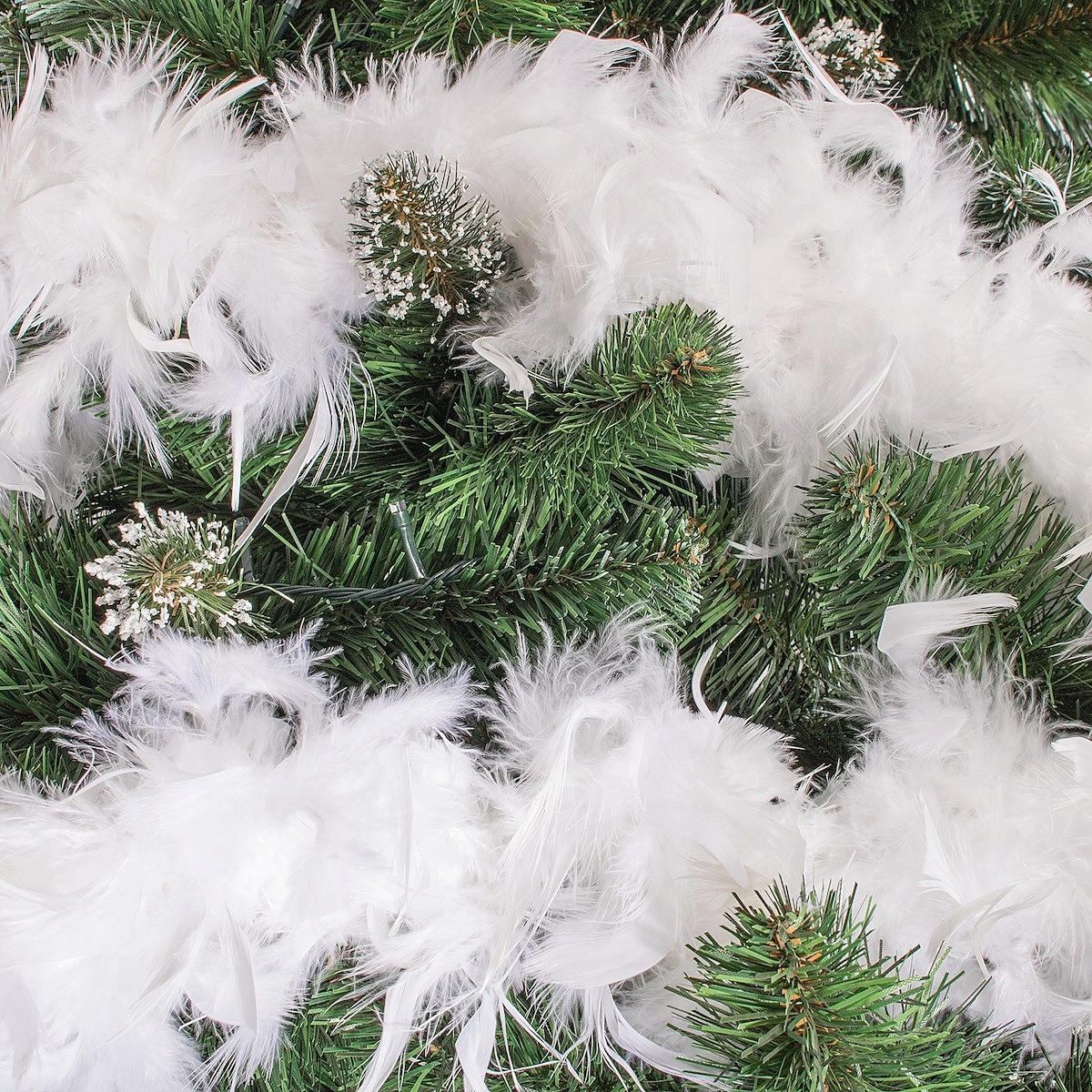 Ghirlandă decorativă pentru brad de Crăciun cu pene albe, 180 cm