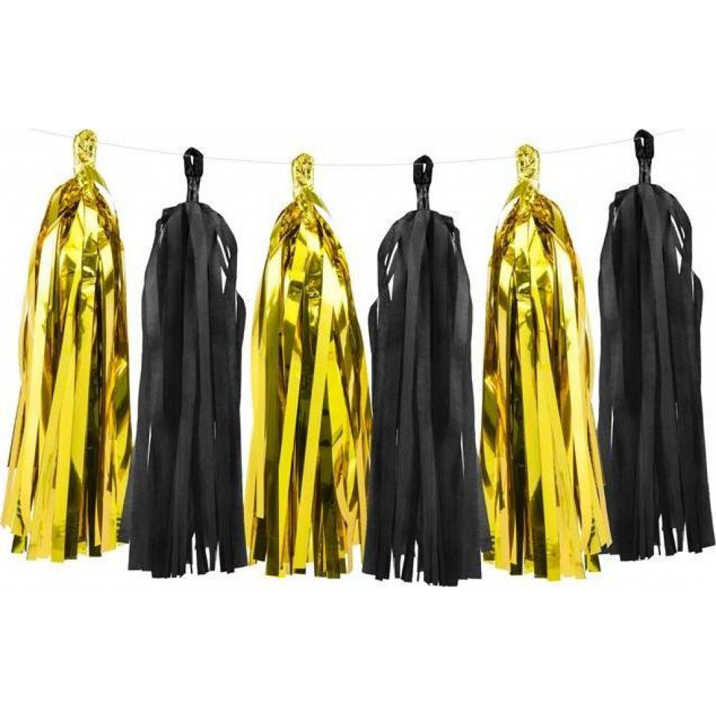 Ghirlanda franjuri pentru decorat auriu si negru 12 buc 30 cm StarHome GiftGalaxy