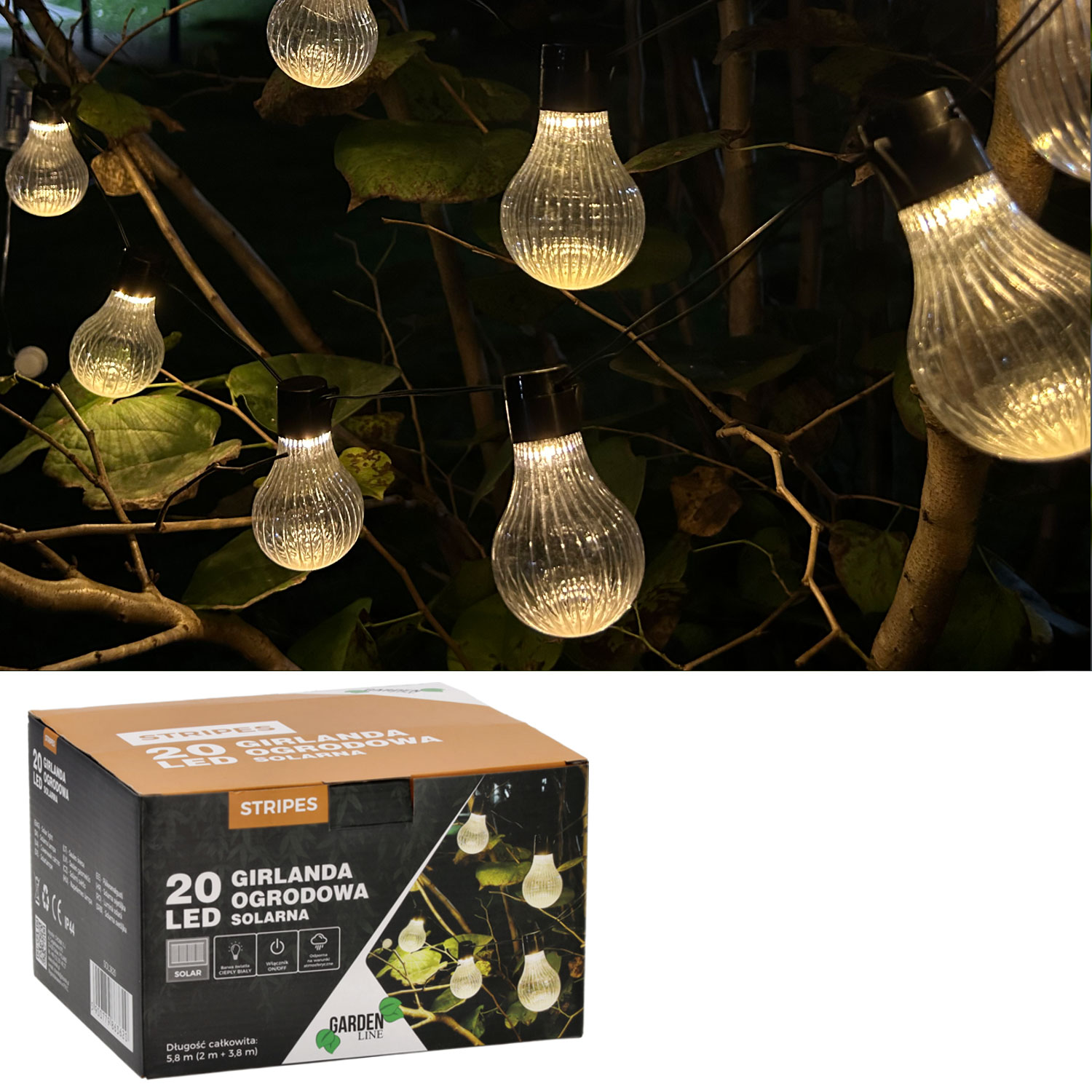Ghirlanda luminoasa solara LED Stripes, 20 becuri, 580 cm, alb cald