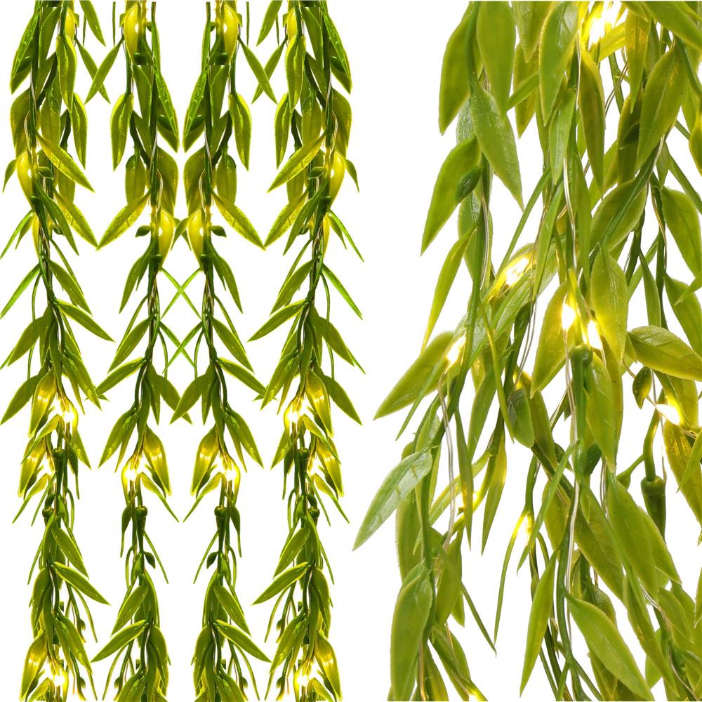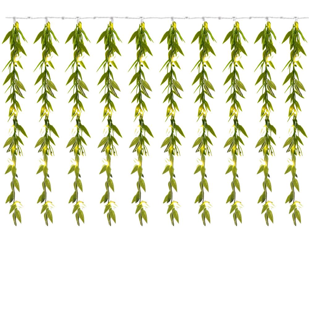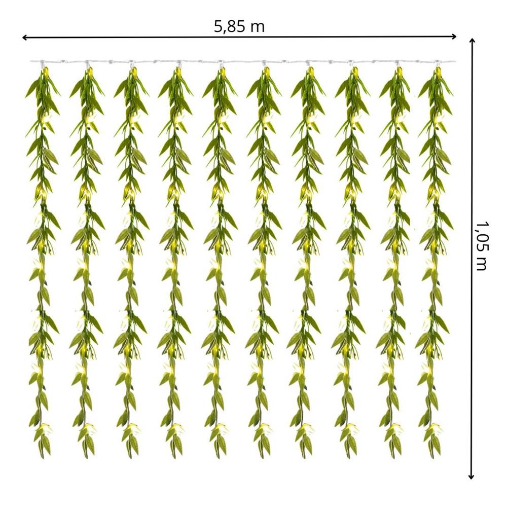 Ghirlandă luminoasă tip perdea cu frunze artificiale, 200 LED, alb cald, 285x105 cm