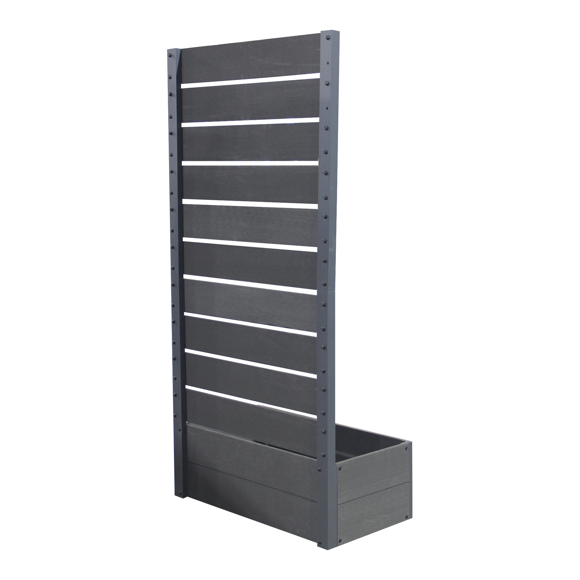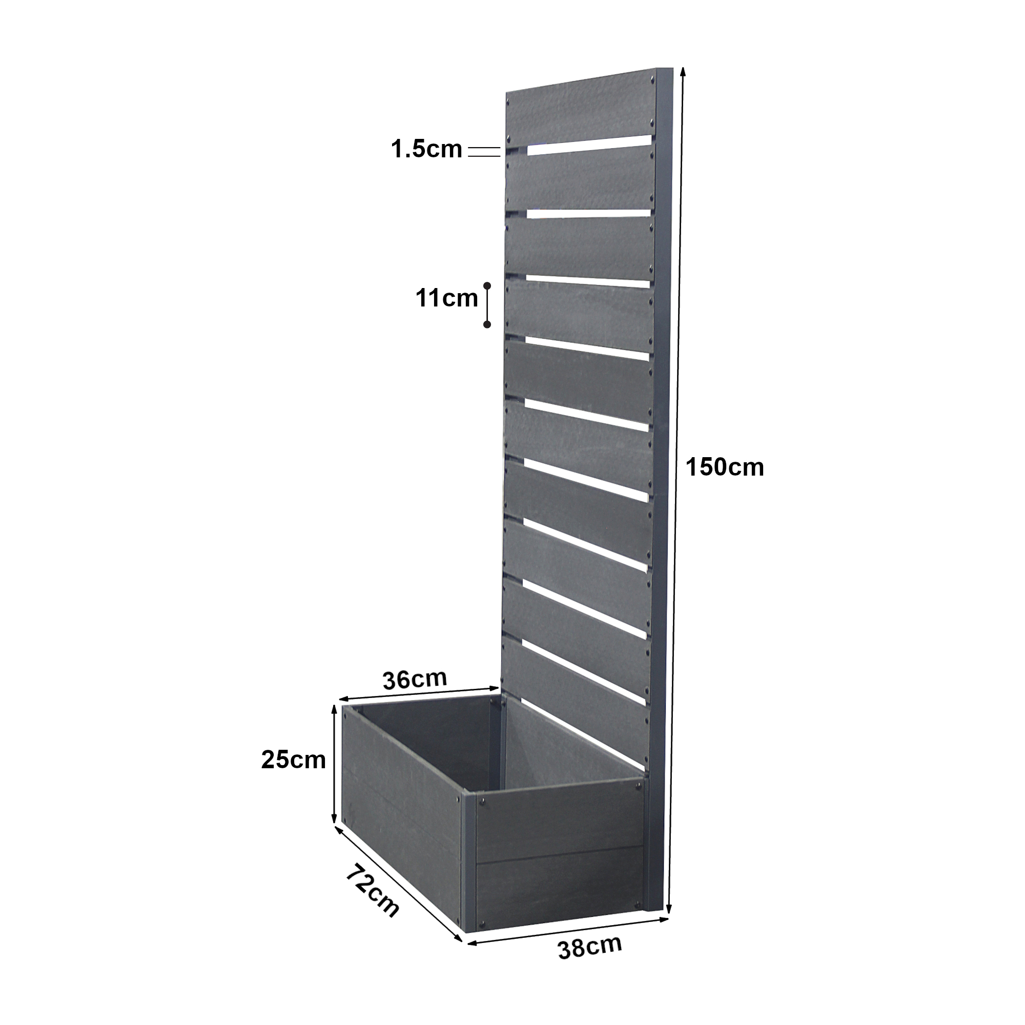 Designul său contemporan în nuanță gri se integrează ușor în diferite stiluri de amenajare exterioară. Este o alegere practică pentru separarea zonelor din curte sau pentru a adăuga un accent decorativ balconului ori terasei.