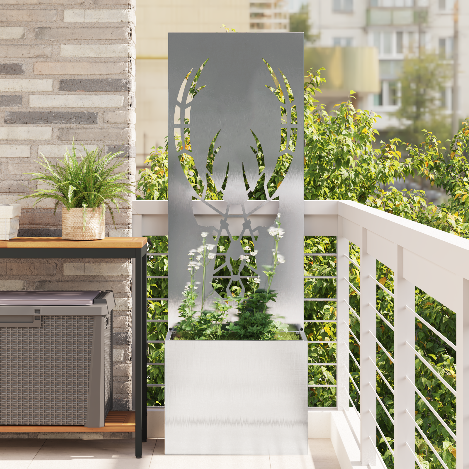 Ghiveci de Grădină cu Panou Decorativ Argintiu 50 x 140 cm GartenMobel Dekor