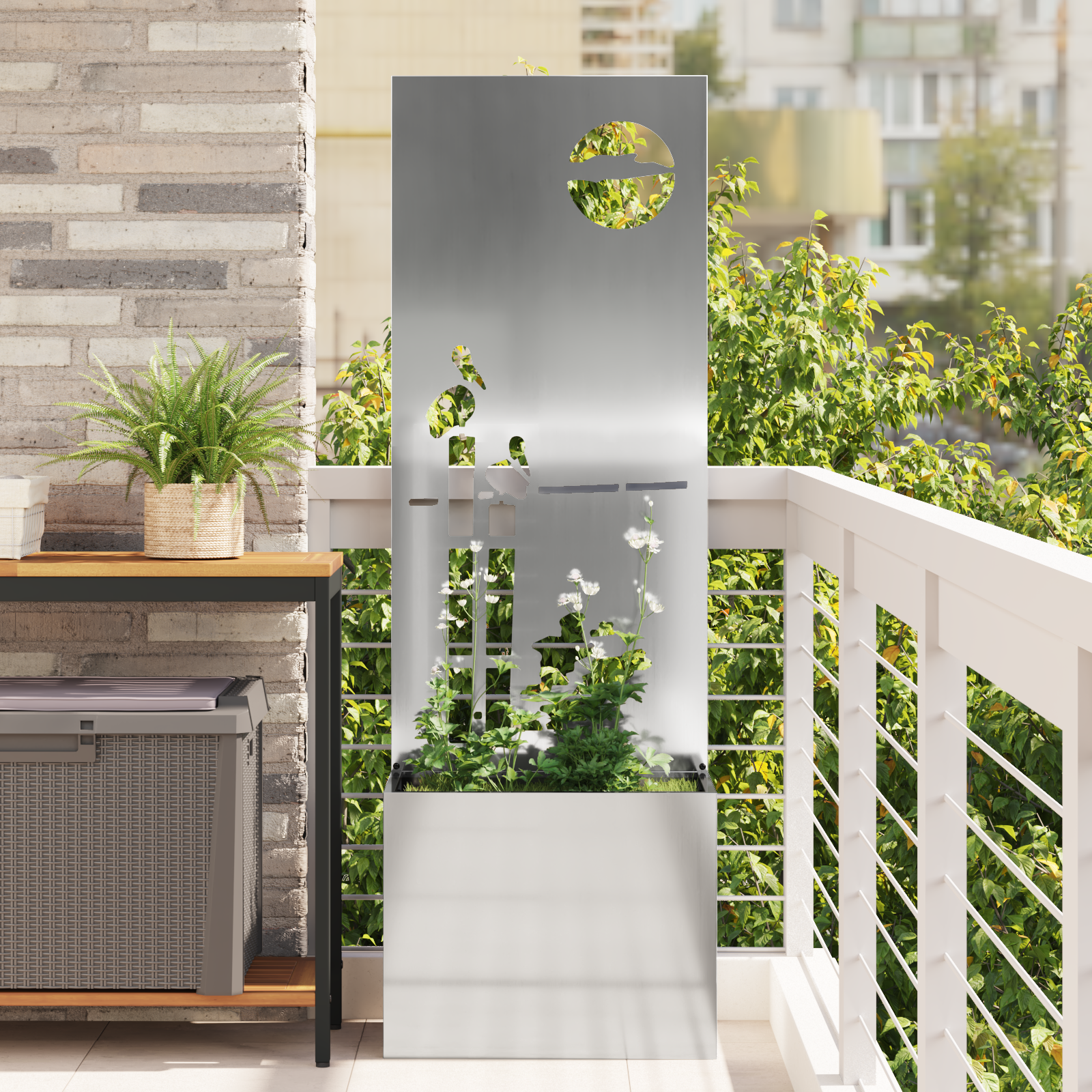 Ghiveci de Grădină cu Panou Decorativ Argintiu 50 x 140 cm GartenMobel Dekor