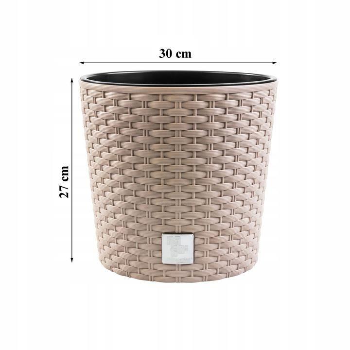 Ghiveci decorativ de flori, Prosperplast, Rato, imitatie ratan, rotund, cafeniu, 30x27 cm