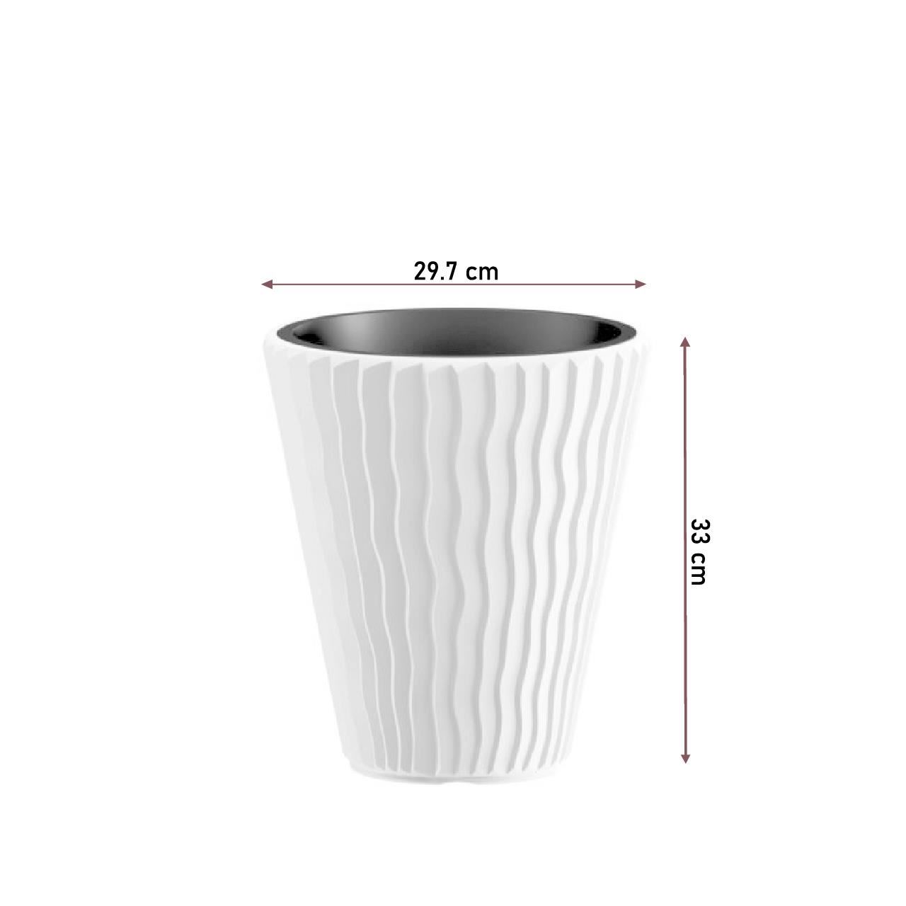 Ghiveci decorativ de flori, rotund, alb, 29.7x33 cm, Sandy GartenVIP DiyLine