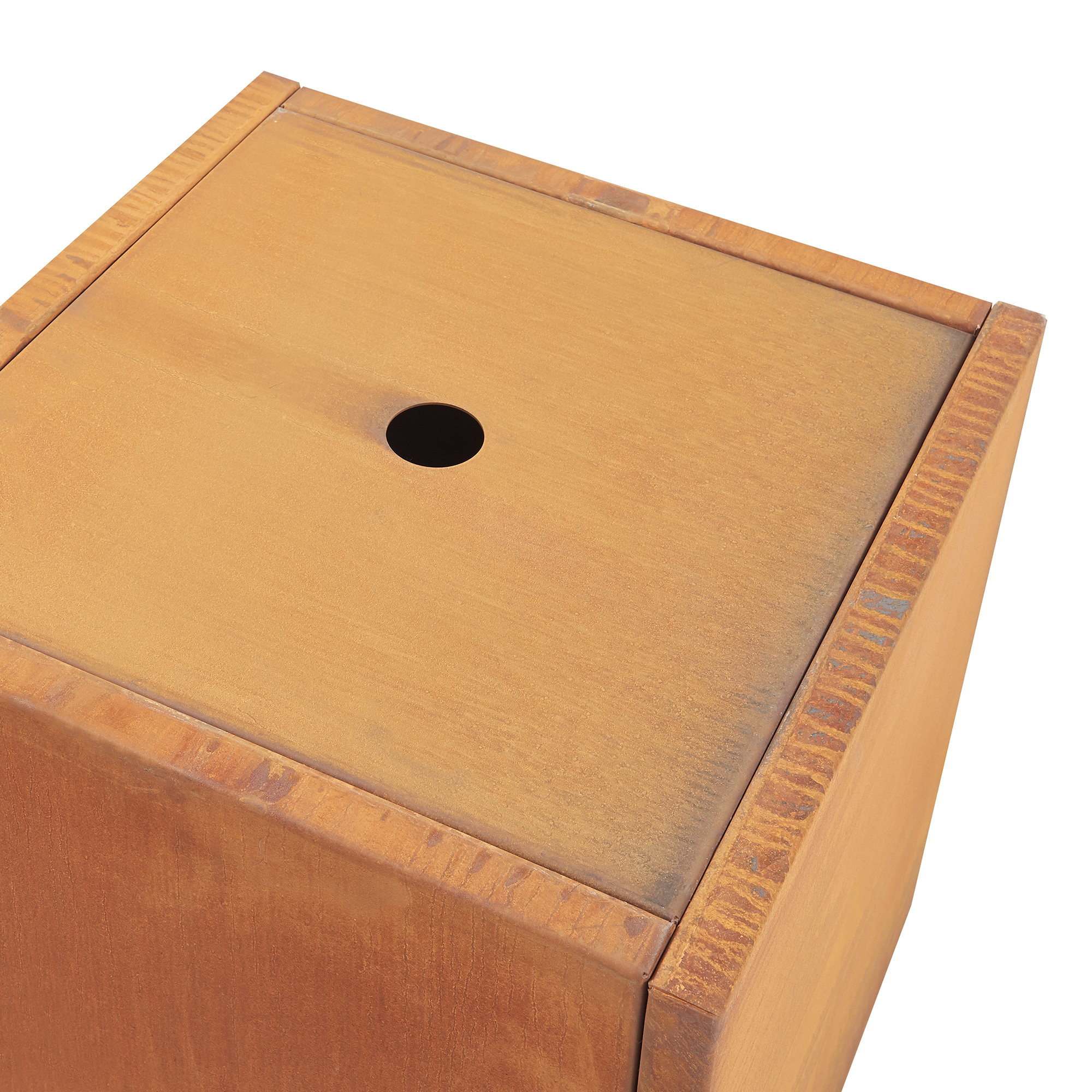 Acest ghiveci exterior din oțel corten oferă spațiu generos pentru flori, arbuști ornamentali sau chiar arbori de dimensiuni mici. Materialul rezistent la intemperii îl face potrivit pentru utilizare pe tot parcursul anului, iar patina specifică de oțel corten se dezvoltă în timp, oferind fiecărei piese un aspect unic.