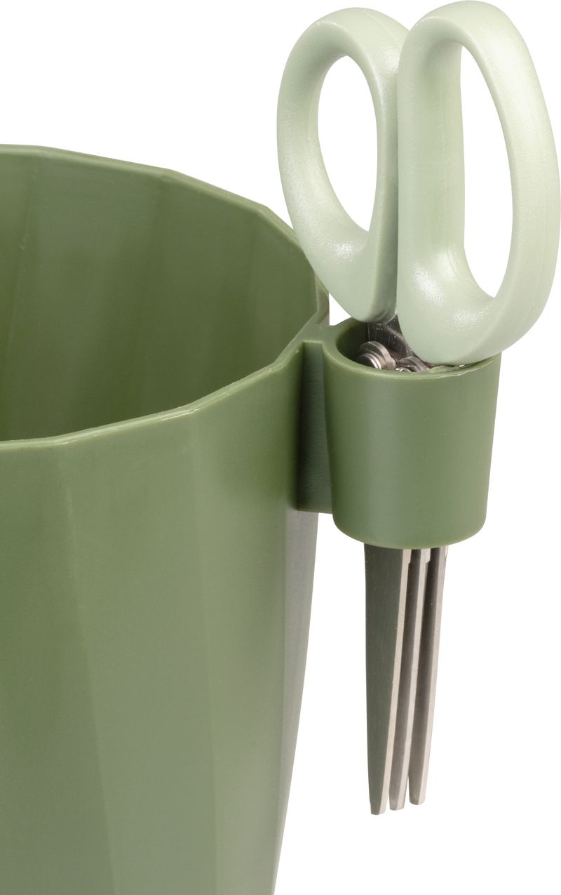 Ghiveci Strend Pro pentru ierburi aromatice, cu foarfecă integrată, verde, 15,5x12,5x16 cm