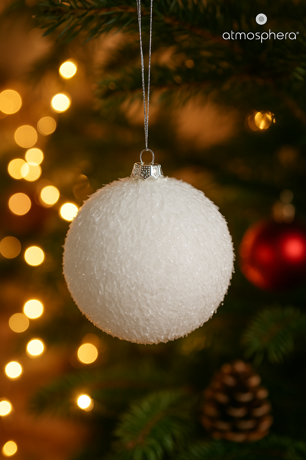 Glob decorativ Atmosphera cu sclipici, efect zapada, diametru 9 cm, alb Household NewTrend