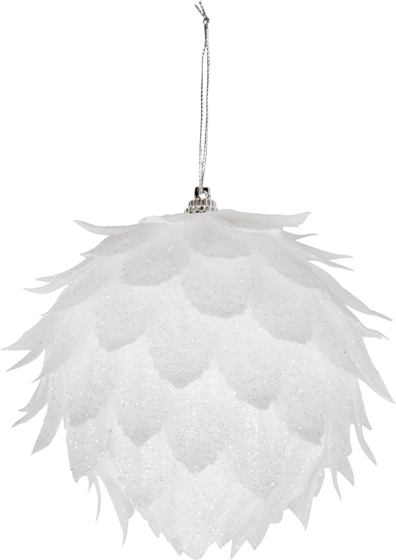 Glob decorativ de Craciun alb cu sclipici, MagicHome, 10 cm