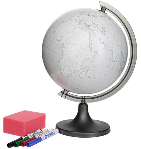 Glob pământesc conturat personalizabil 25 cm, cu 4 markere și burete