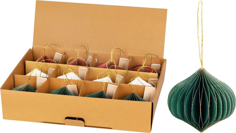 Globuri decorative pentru brad din hartie, 8 cm, set 12 buc, multicolor