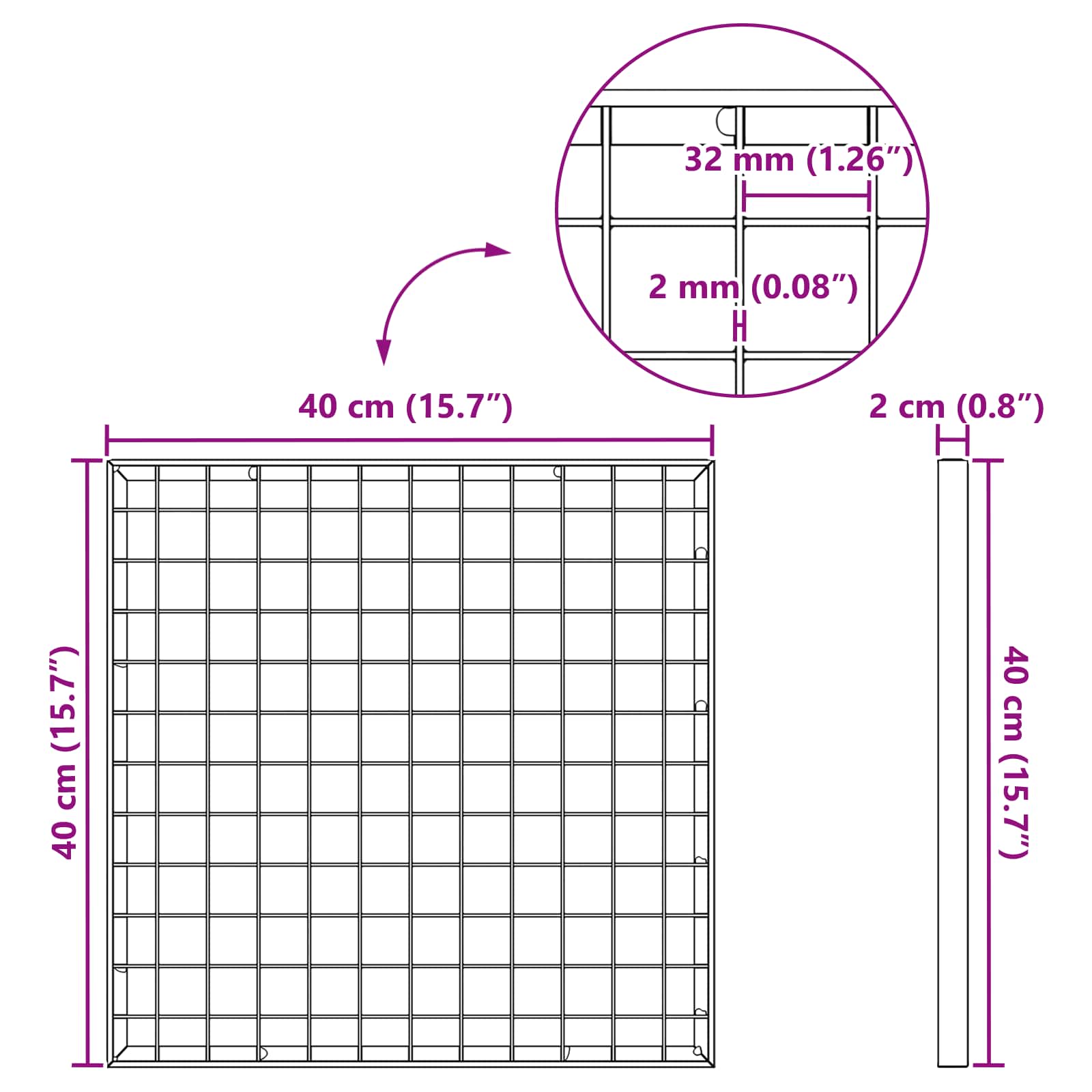 - Dimensiuni generale: 40 x 40 x 2 cm (L x l x î)