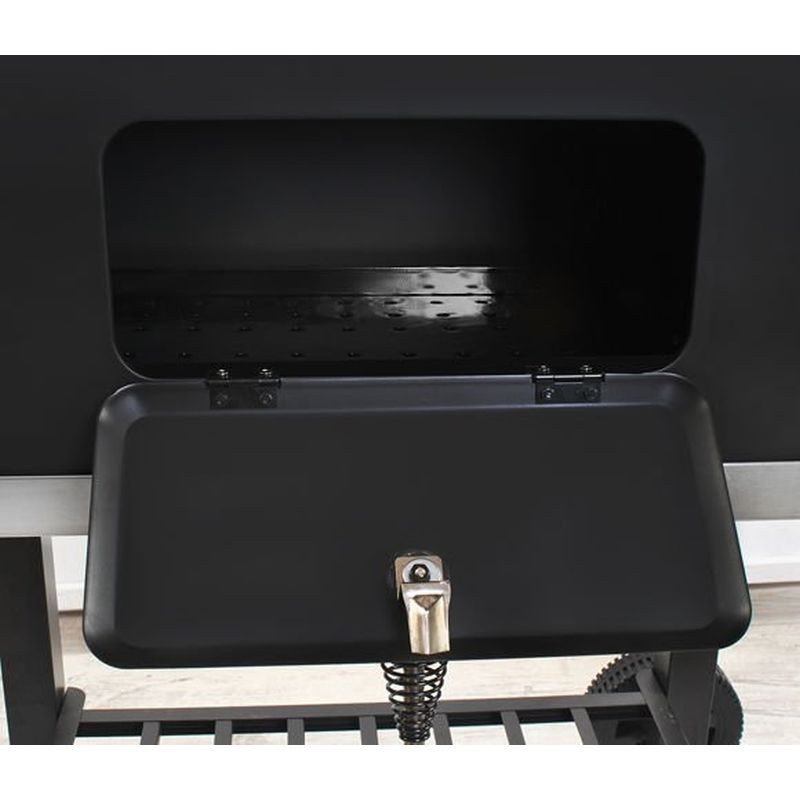 Usurinta in utilizare faciliteaza gatirea si curatarea rapida a gratarului. Este prevazut cu 2 rafuri, in partea laterala un raft pliabil cu 4 cartlige pentru ustensile, iar in partea inferioara o zona generoasa de depozitare. Datorita celor 2 roti gratarul poate fi cu usurinta mutat dintr-o parte in alta a terasei. Gratarul are dimensiunea totala de 115x46x106 cm, iar zona de grill are dimensiunea de 61.5x46x51 cm.