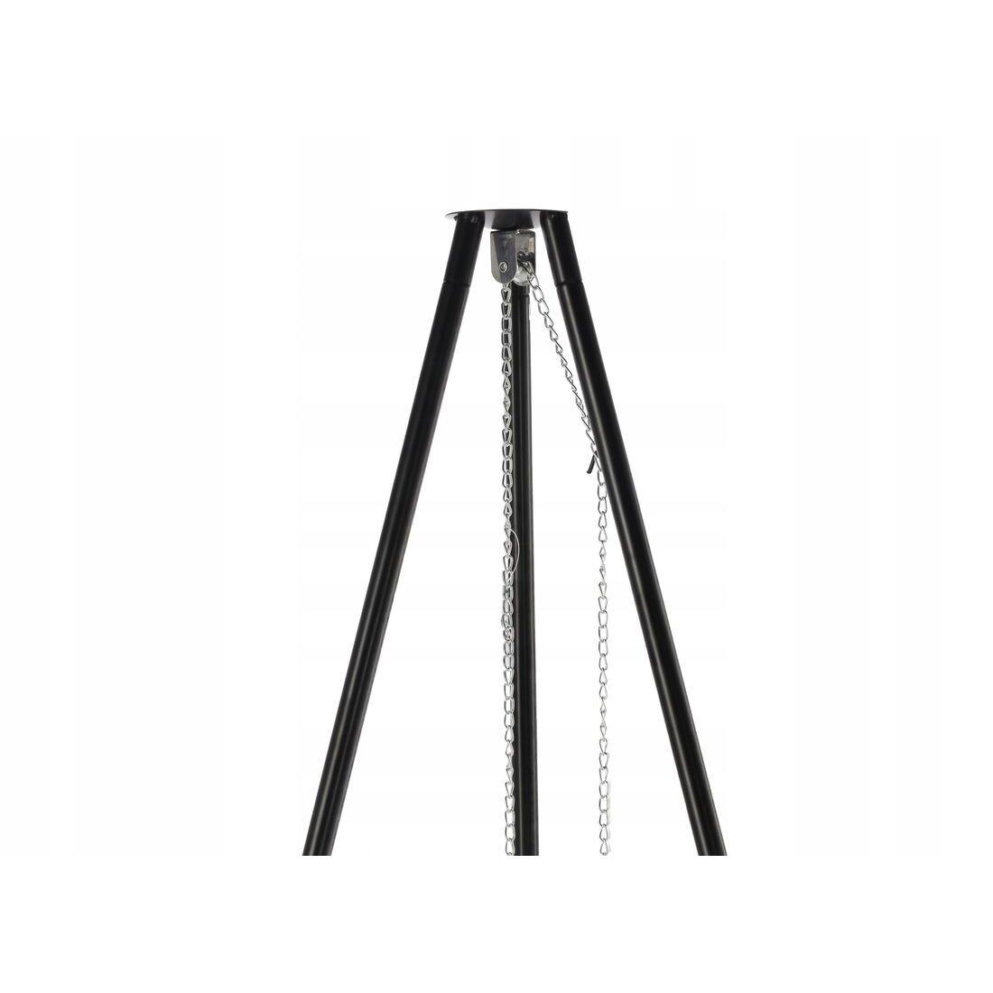 - Trepiedul fabricat din otel vopsit cu pulbere este solid si asigura o stabilitate optima. Va rezista cu succes deteriorarilor si uzurii. Structura sa, prevazuta cu lant, permite ajustarea inaltimii la care este amplasat gratarul.