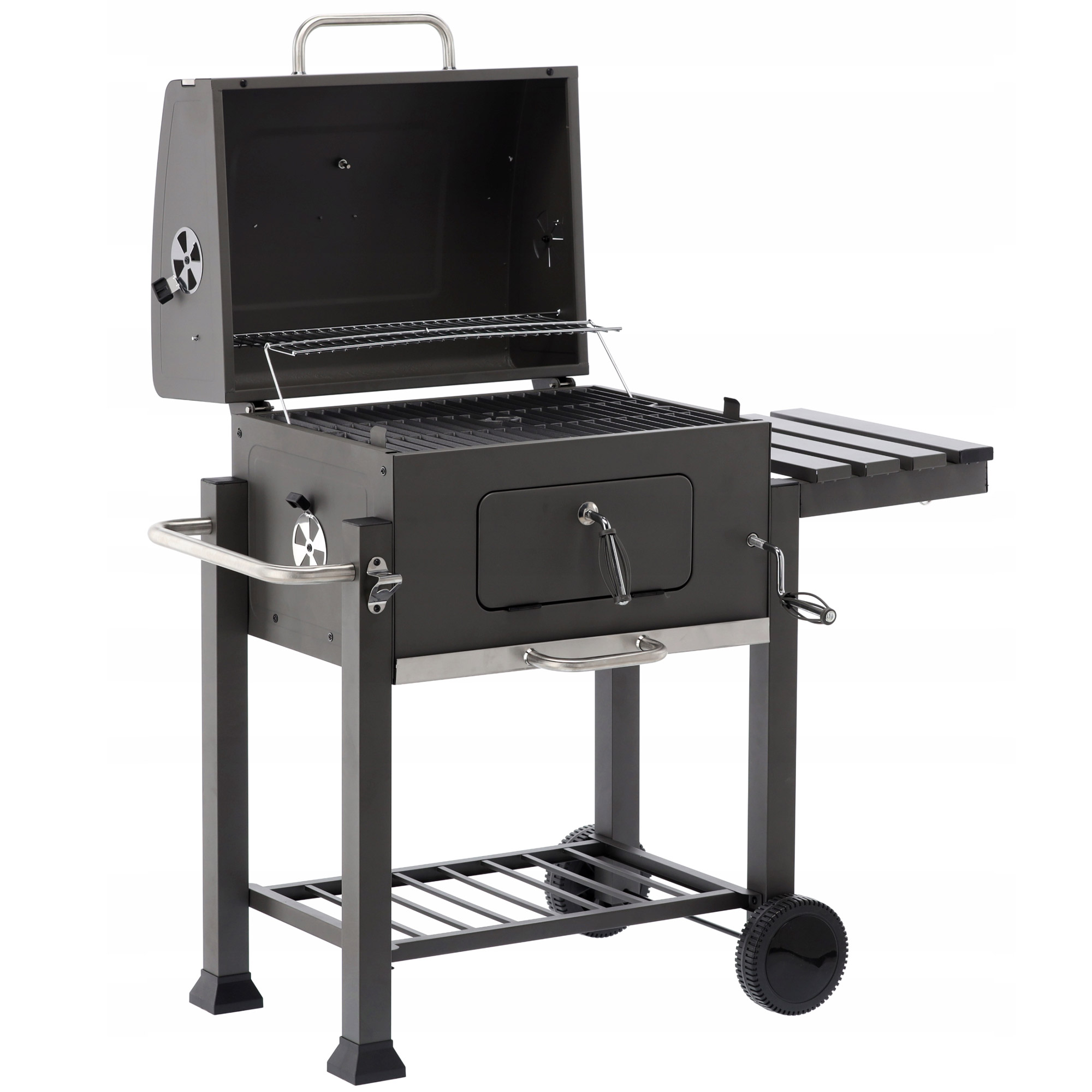 Gratar dreptunghiular pe carbuni, cu suport lateral si termometru capac, 115x60x108cm Household NewTrend