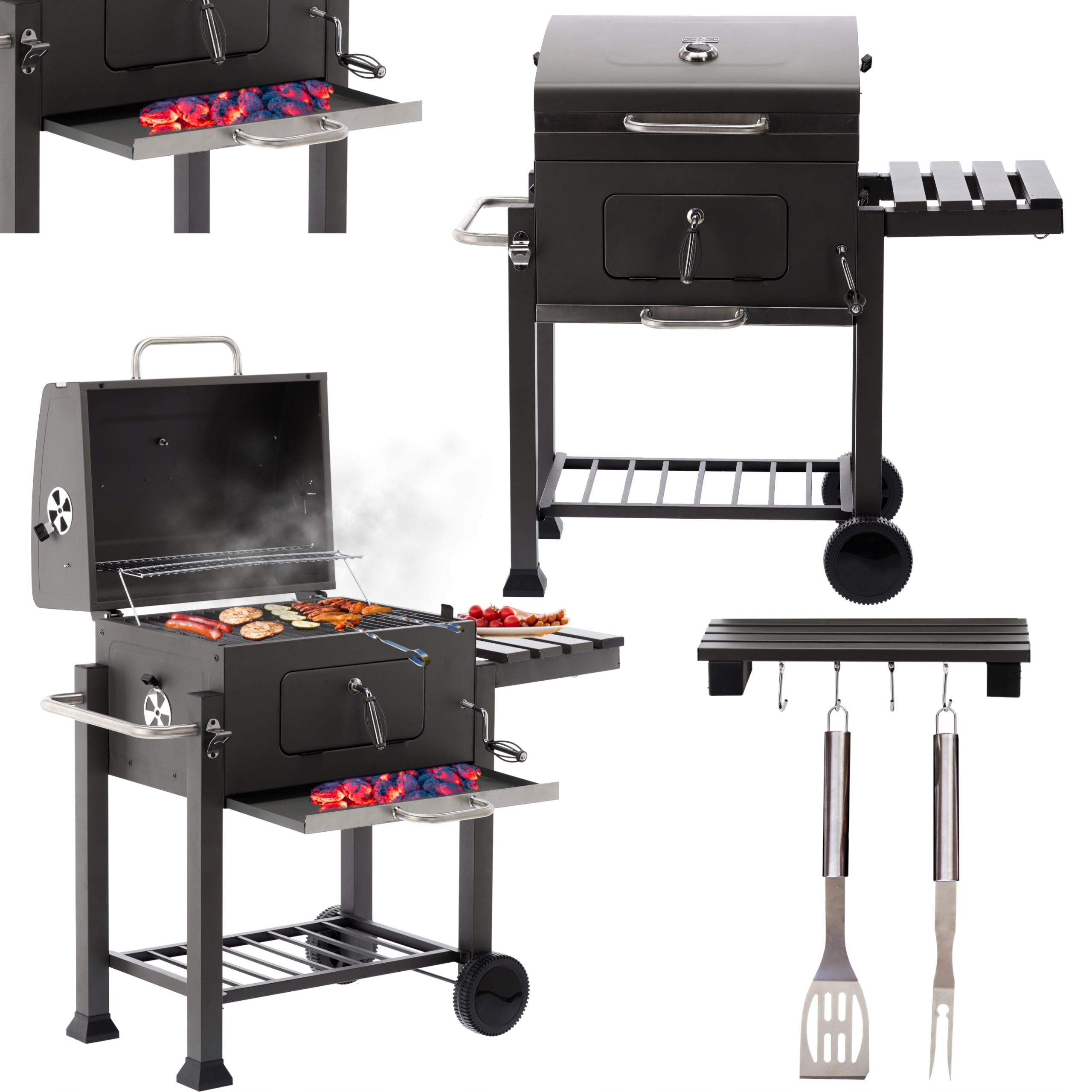 Specificatii Gratar dreptunghiular carbuni, suport lateral termometru