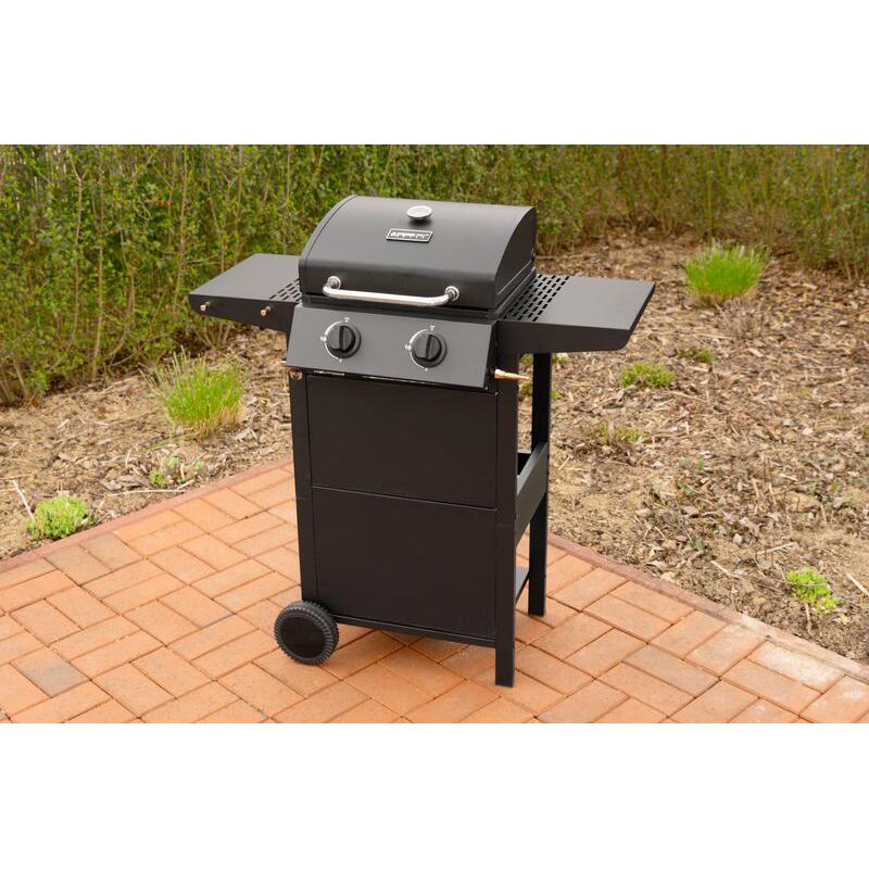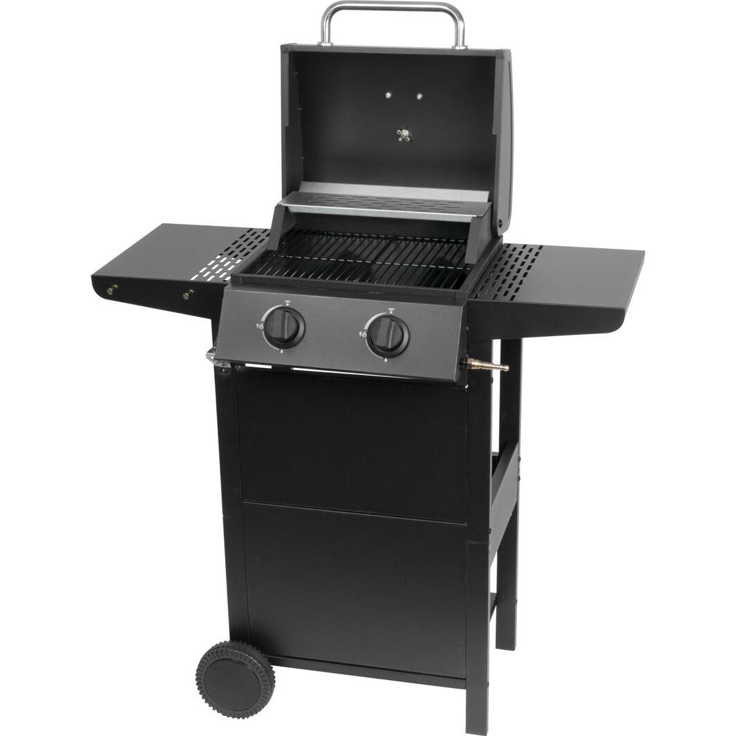 Gratar gradina, grill dreptunghiular, cu gaz, 2 arzatoare, cu roti, capac, rafturi, BBQ Andora GartenVIP DiyLine