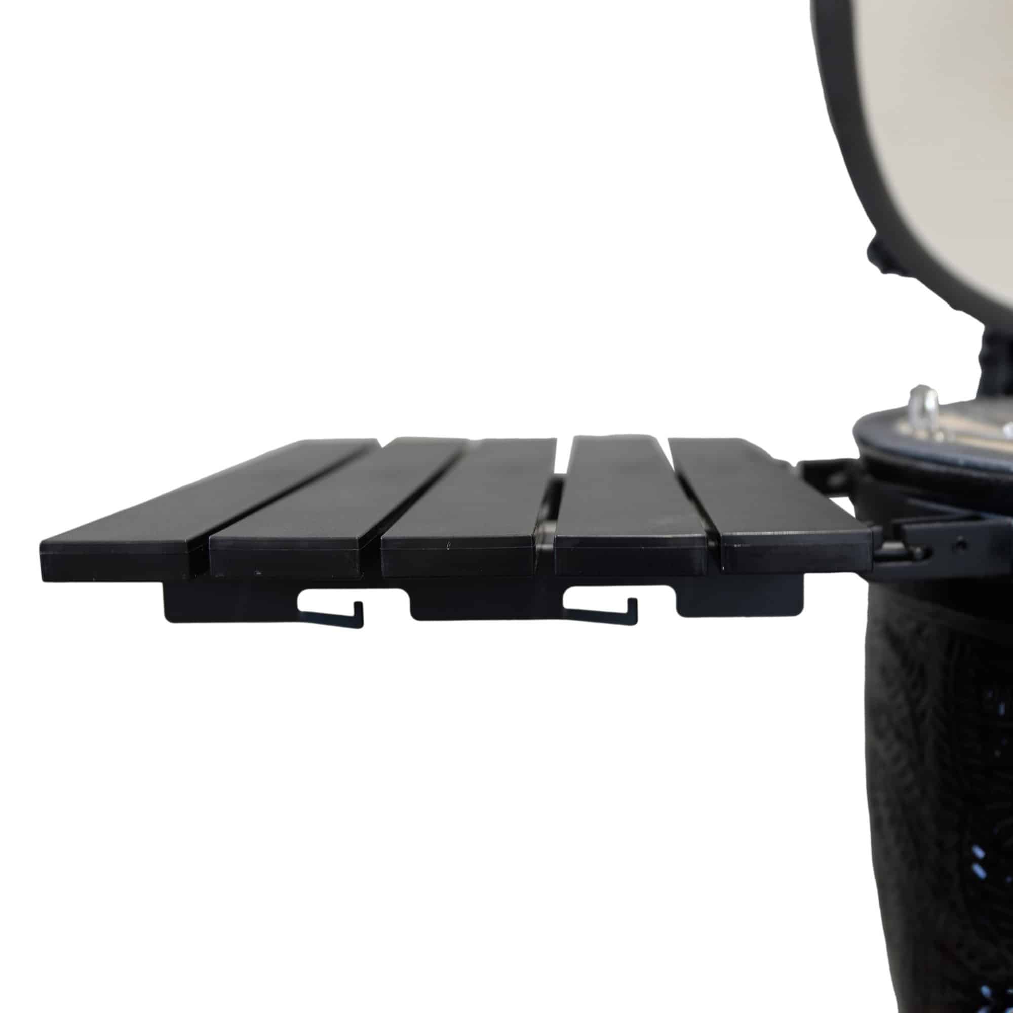 - 2 mese laterale durabile din polietilenă de înaltă densitate care vor servi drept suprafață de lucru, cu cârlige integrate pentru ustensile