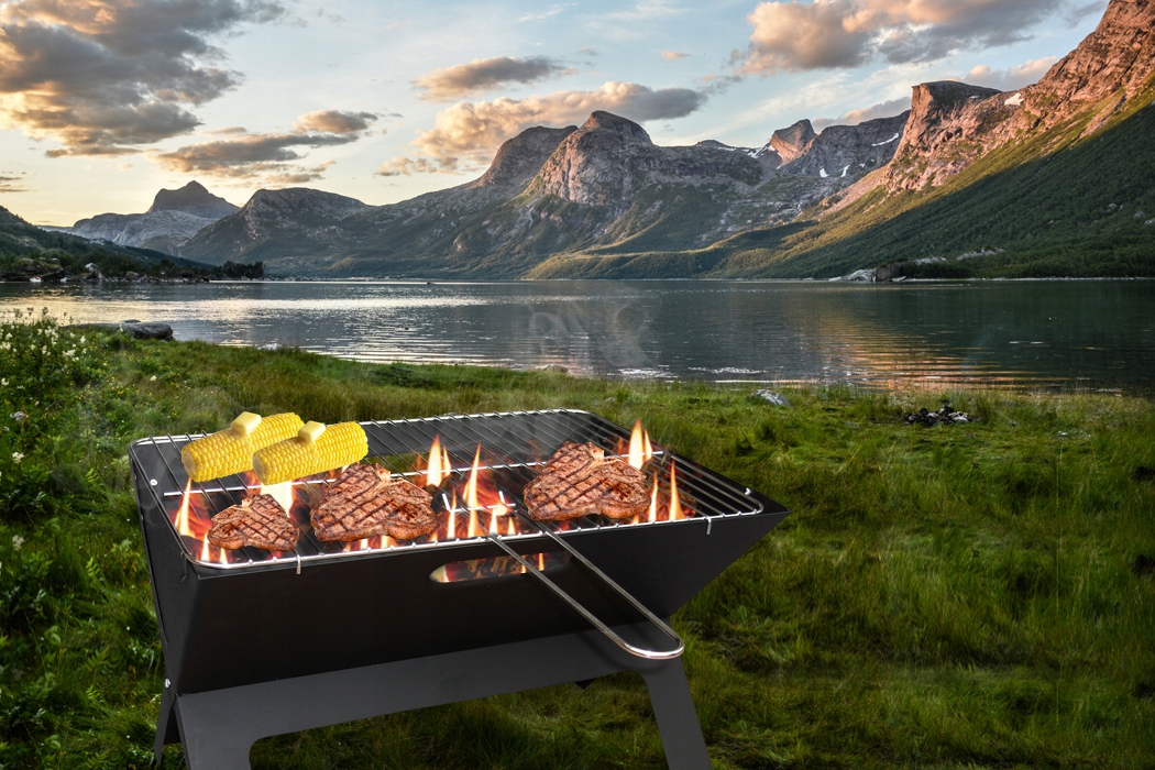 Descriere Gratar metalic carbune, pliabil, otel tava