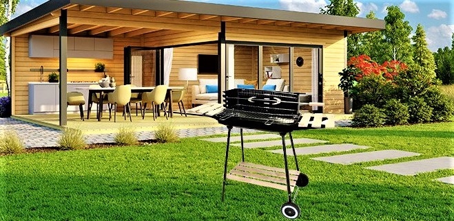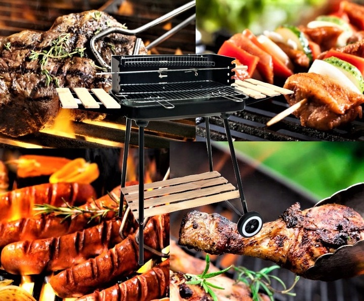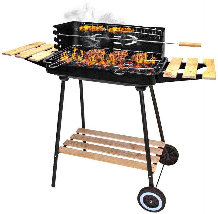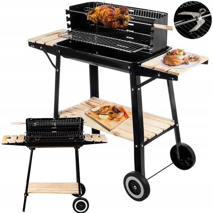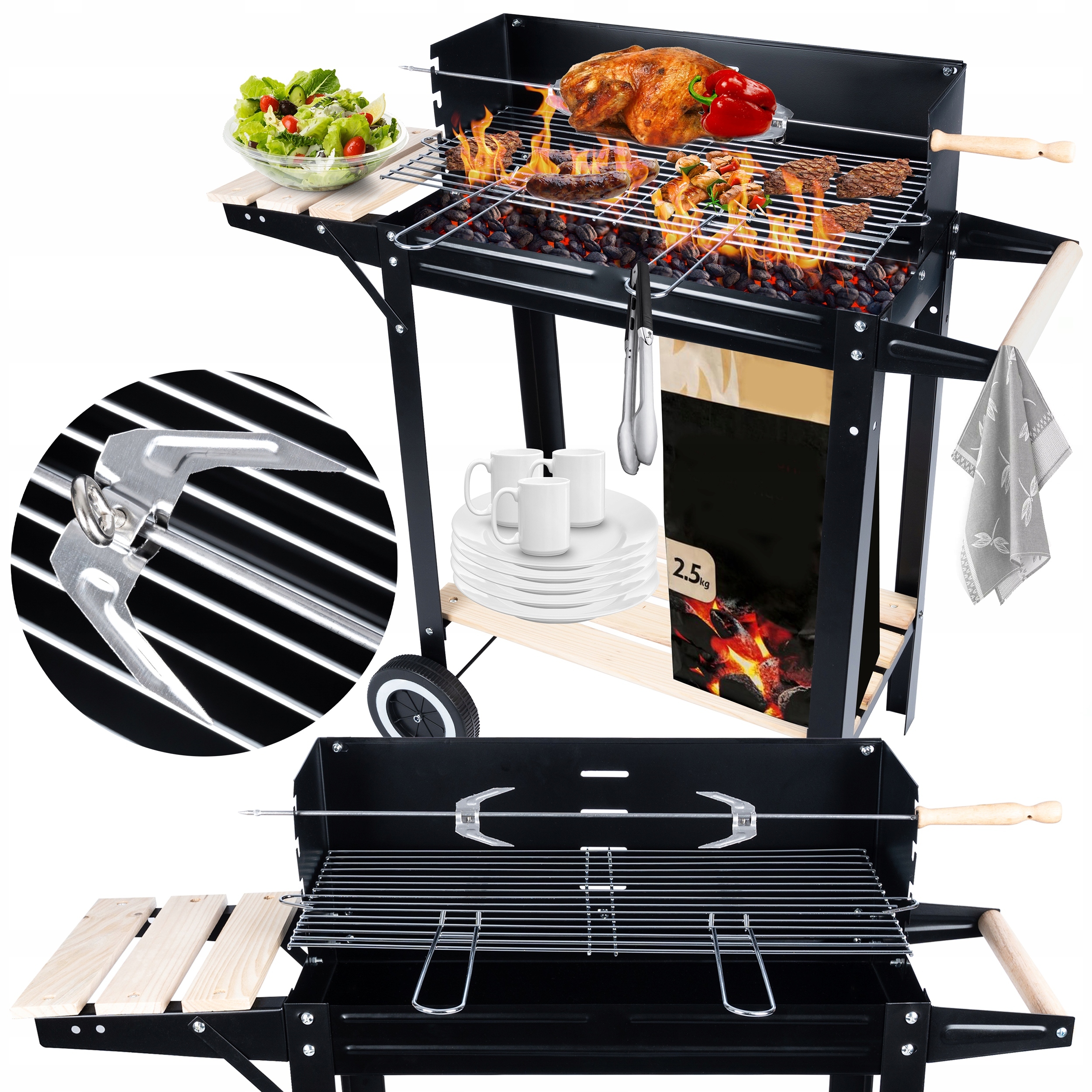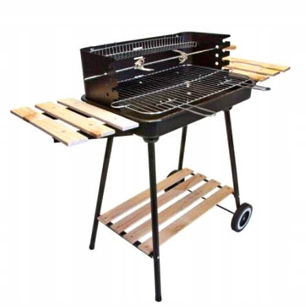 Gratar metalic pe carbuni, tava cromata, cu spita pentru rotisor, 104x88x45cm Household NewTrend