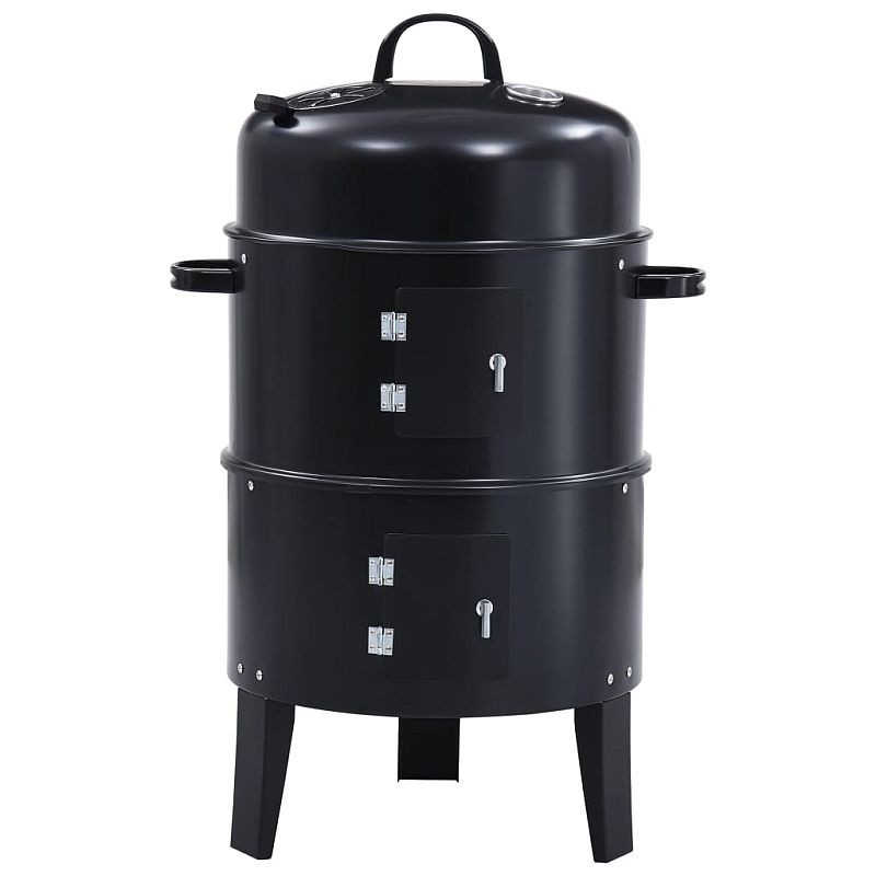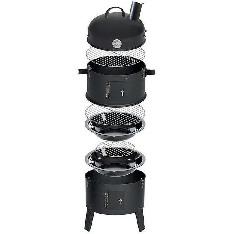 Gratar pe carbuni 3 in 1, capac cu termometru, 2 usi, 3 compartimente cu afumatoare/grill/gatire la abur, 40x40x80 cm MultiMark GlobalProd