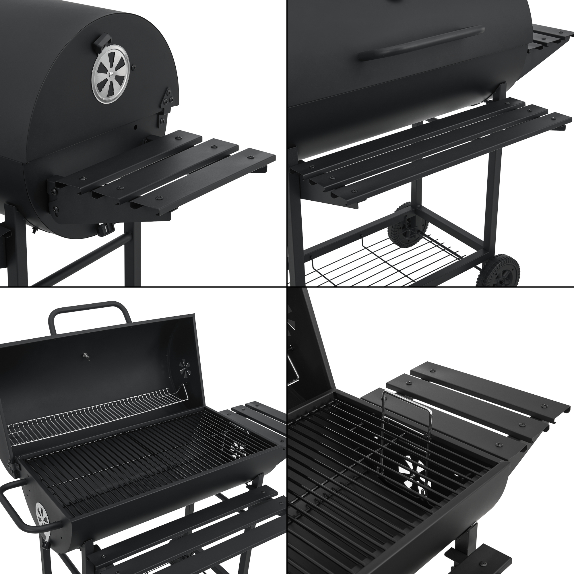 Datorită capacului cu termometru integrat și sistemului de ventilare reglabil, poți pregăti carnea, legumele sau cârnații mai uniform și mai ușor. Rafturile practice din față, lateral și partea inferioară îți păstrează ustensilele, ingredientele și accesoriile la îndemână, astfel încât fiecare sesiune de gătit să fie mai organizată.