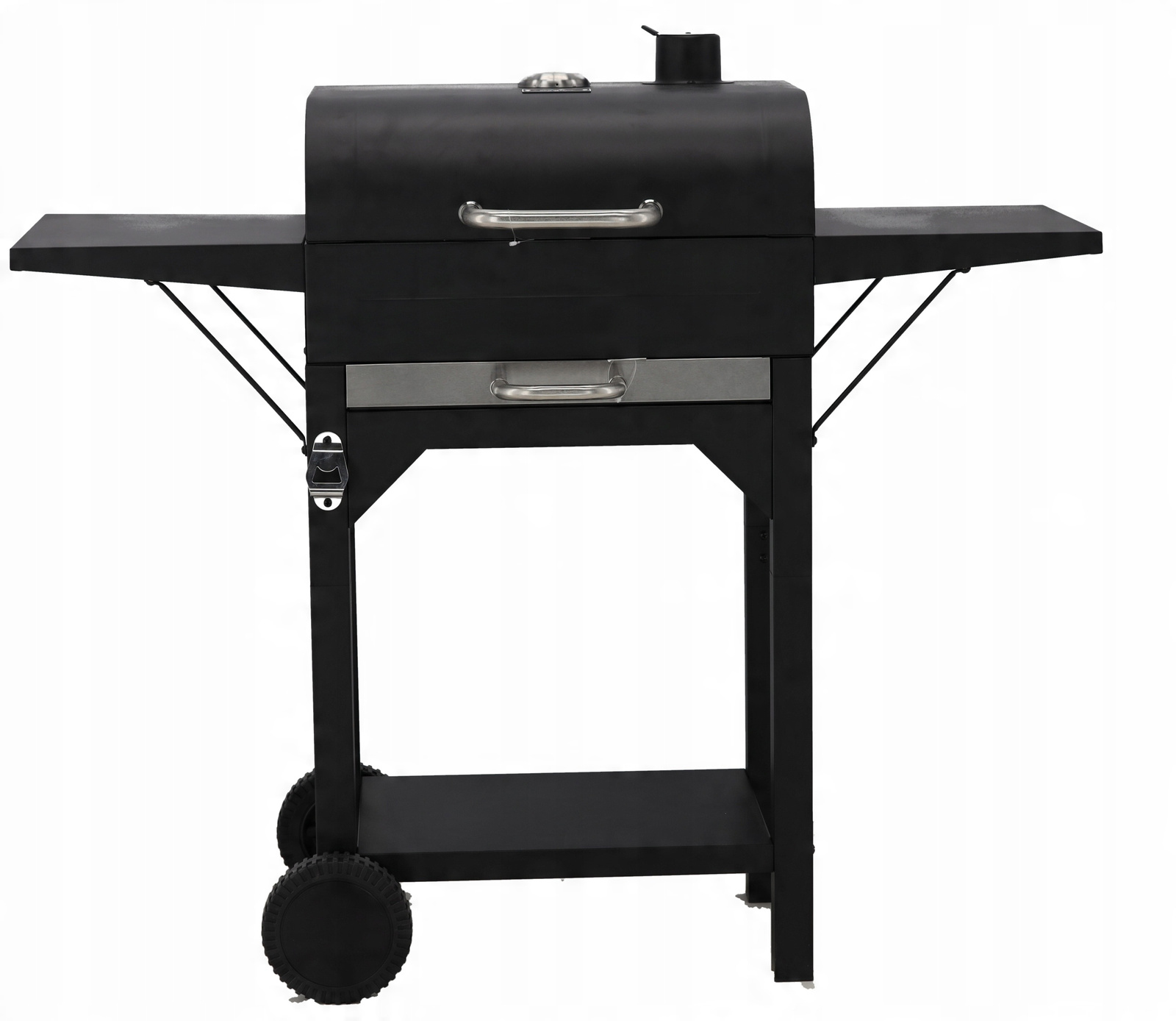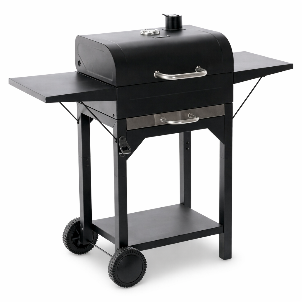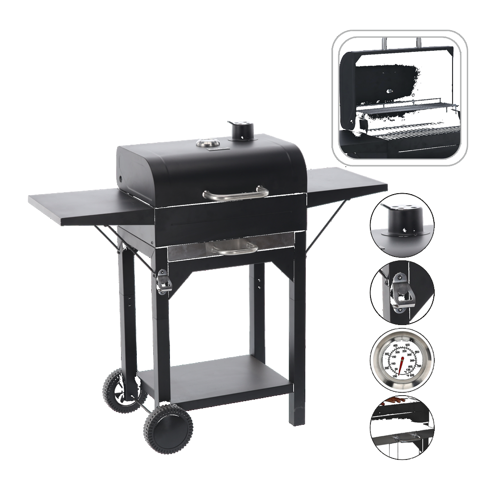 Este potrivit pentru curte, terasa sau gradina, atunci cand vrei sa pregatesti carne, legume, peste sau burgeri cu gust autentic de jar. Capacul ajuta la mentinerea caldurii, iar termometrul integrat iti permite sa urmaresti temperatura pentru o gatire mai precisa. Raftul inferior si deschizatorul de sticle integrat adauga un plus de confort la fiecare utilizare.