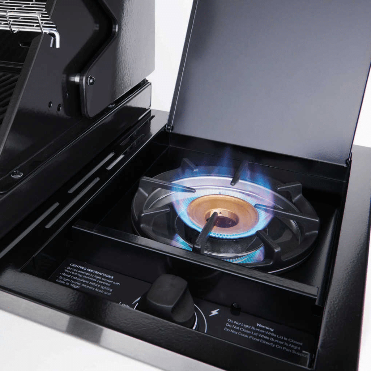 Un avantaj suplimentar al acestui model este arzătorul lateral BeefEater, care vă permite să utilizați și tigăi, wok-uri și alte vase din bucătărie. Gătiți garnituri delicioase, sosuri sau chiar vin fiert în sezonul rece folosind arzătorul lateral. În plus, puteți găti cartofi prăjiți delicioși pe arzătorul puternic încorporat.