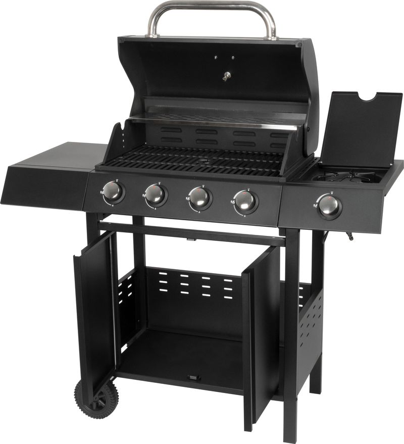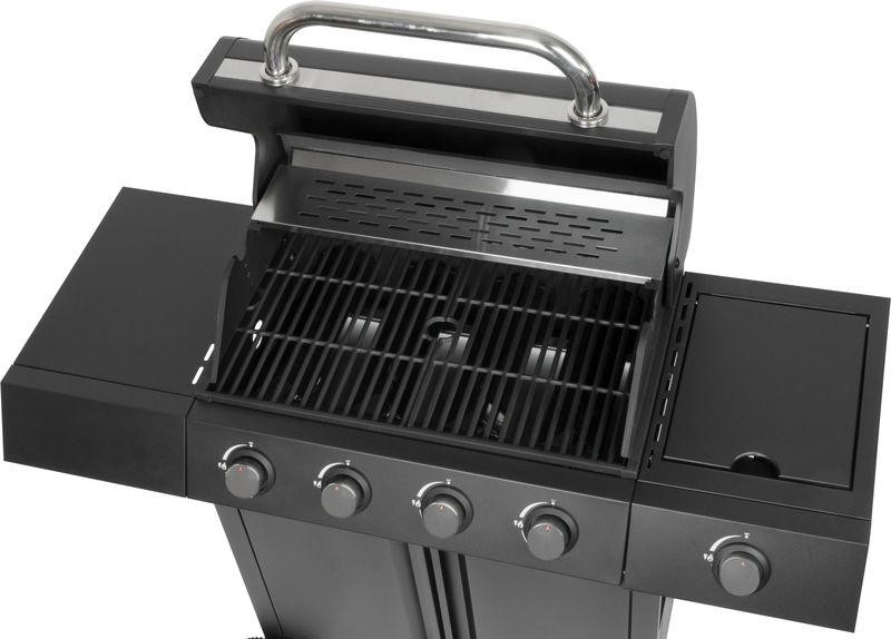 Grătarul pe gaz Strend Pro Gordon BBQ 4+1 arzătoare este alegerea potrivită pentru cei care vor să gătească rapid, comod și eficient în curte, pe terasă sau în grădină. Modelul este prevăzut cu 4 arzătoare principale pentru prepararea uniformă a alimentelor și cu 1 arzător lateral, ideal pentru sosuri, garnituri sau alte preparate gătite simultan.