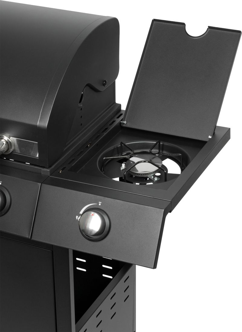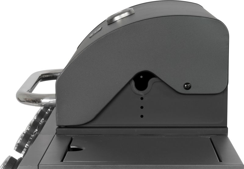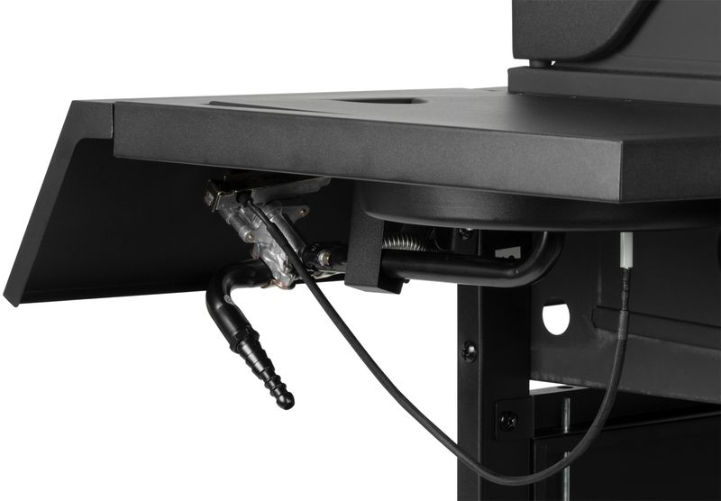 Pentru un plus de confort, acest grătar BBQ pe gaz dispune de raft lateral pentru accesorii și de un spațiu inferior practic, potrivit pentru amplasarea buteliei de gaz. Cele două roți facilitează mutarea ocazională a grătarului, iar finisajul negru cu acoperire tip pulbere oferă un aspect modern și elegant.