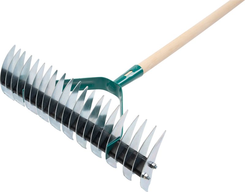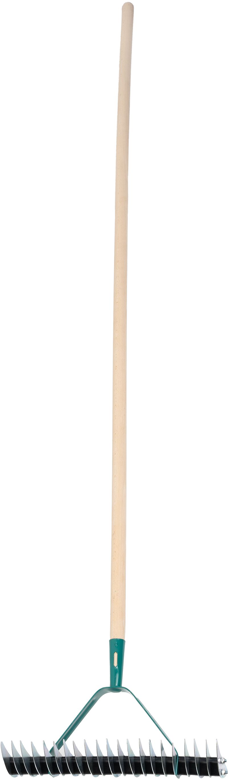 Datorită construcției cu 11/21 dinți metalici, unealta pătrunde eficient în stratul superficial al solului, contribuind la o mai bună circulație a aerului, apei și nutrienților. Rezultatul este un gazon mai des, mai curat și cu un aspect îngrijit. Coada din lemn oferă o manevrare comodă și stabilitate în timpul utilizării.