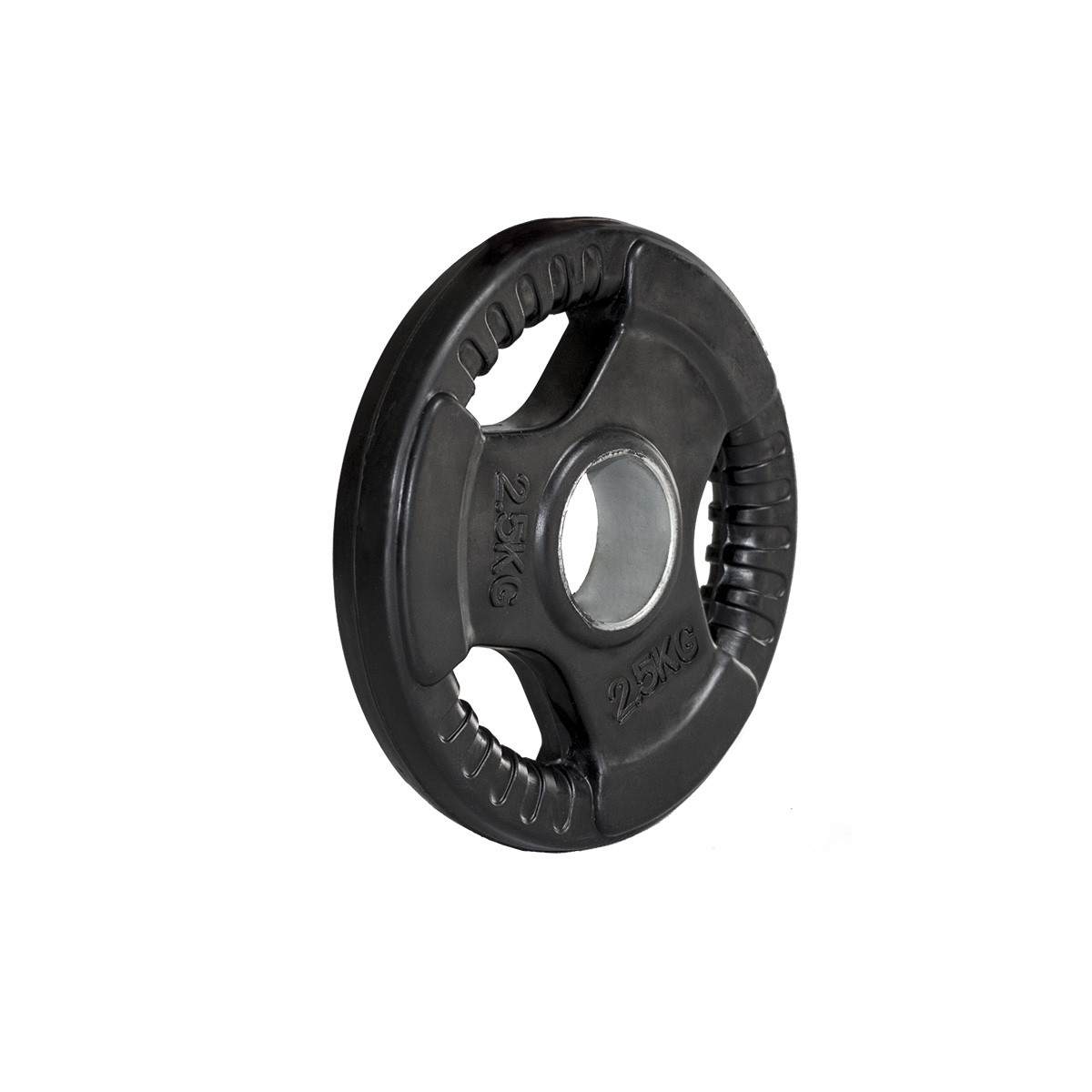 Greutatea cauciucata este prevazuta cu manere aderente pentru o manevrare mai usoara, astfel incat sa puteti schimba mai rapid si mai sigur greutatea pe bara.