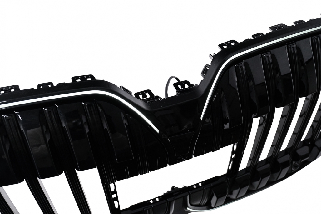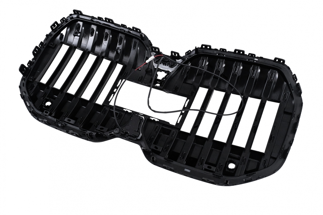Oferă mașinii tale un plus de stil cu această grilă centrală cu LED pentru BMW Seria 7 G70, realizată pentru a evidenția designul frontal al automobilului. Finisajul negru lucios completează perfect liniile elegante ale modelului și contribuie la un aspect modern, exclusivist și impunător.