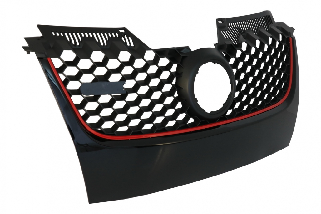 Designul tip fagure, completat de linia rosie decorativa, evidentiaza partea frontala a masinii si transforma rapid aspectul unui VW Golf 5. Produsul nu include emblema si este destinat celor care prefera un look curat, personalizat.