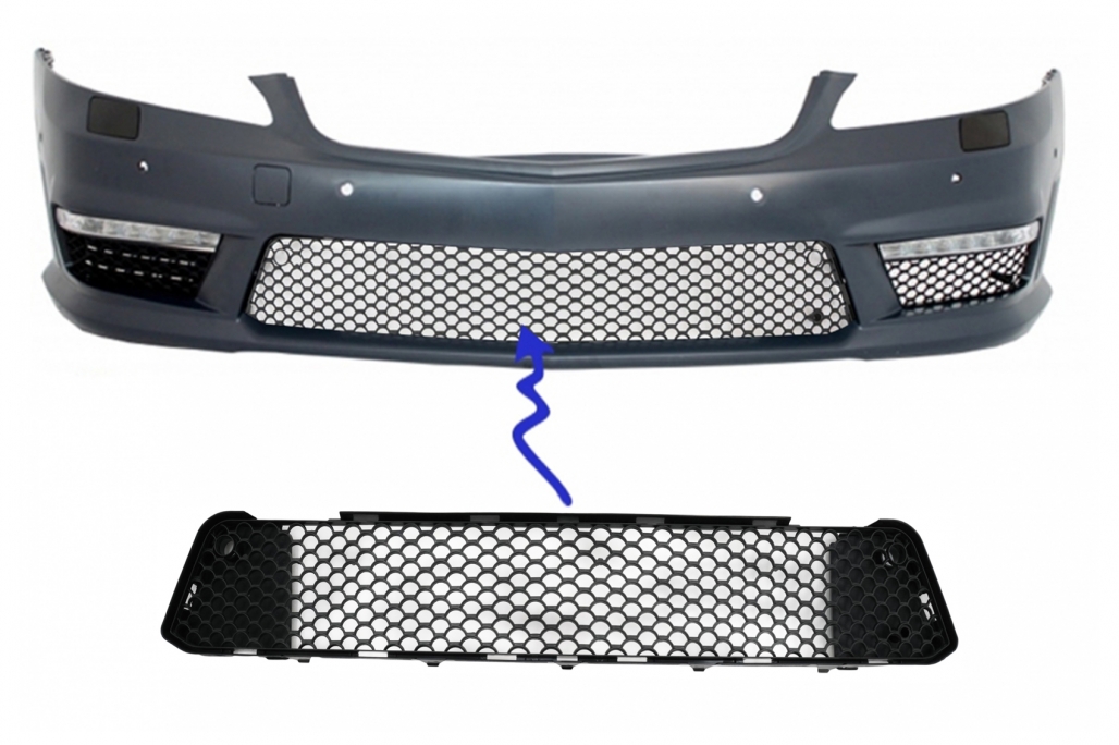 Grila centrală inferioară bară față Mercedes S-Class W221 este alegerea potrivită pentru înlocuirea piesei uzate sau deteriorate de pe modelele S63 / S65 AMG. Realizată din polipropilenă de calitate, această grilă oferă un aspect sportiv, o bună rezistență în utilizare și nu necesită vopsire.
