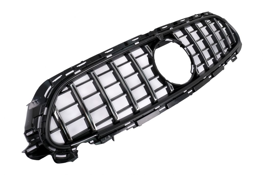 Grilă centrală Panamericana crom pentru Mercedes E-Class facelift W213, S213, C238 și A238. Realizată din ABS rezistent, oferă un aspect sportiv și elegant, fiind compatibilă inclusiv cu modele echipate cu sistem 360 camera. Ideală pentru un upgrade vizual premium.