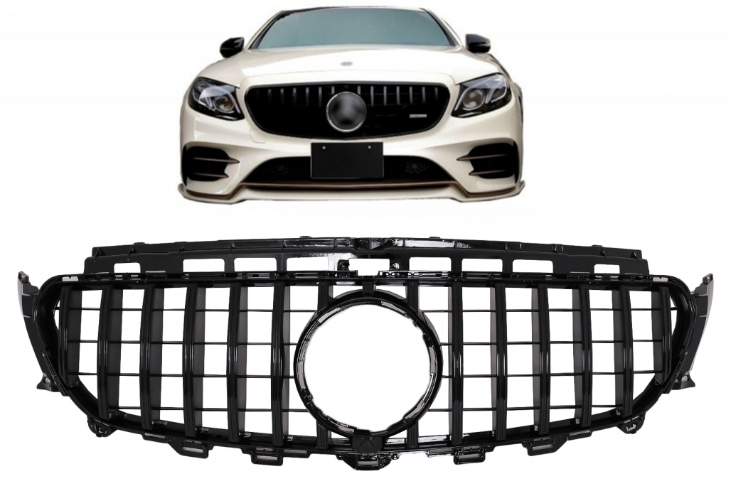 Grila Centrala compatibil cu Mercedes E-Class W213 S213 C238 (2016-2019) GT-R Panamericana Design Negru Cu Camera 360