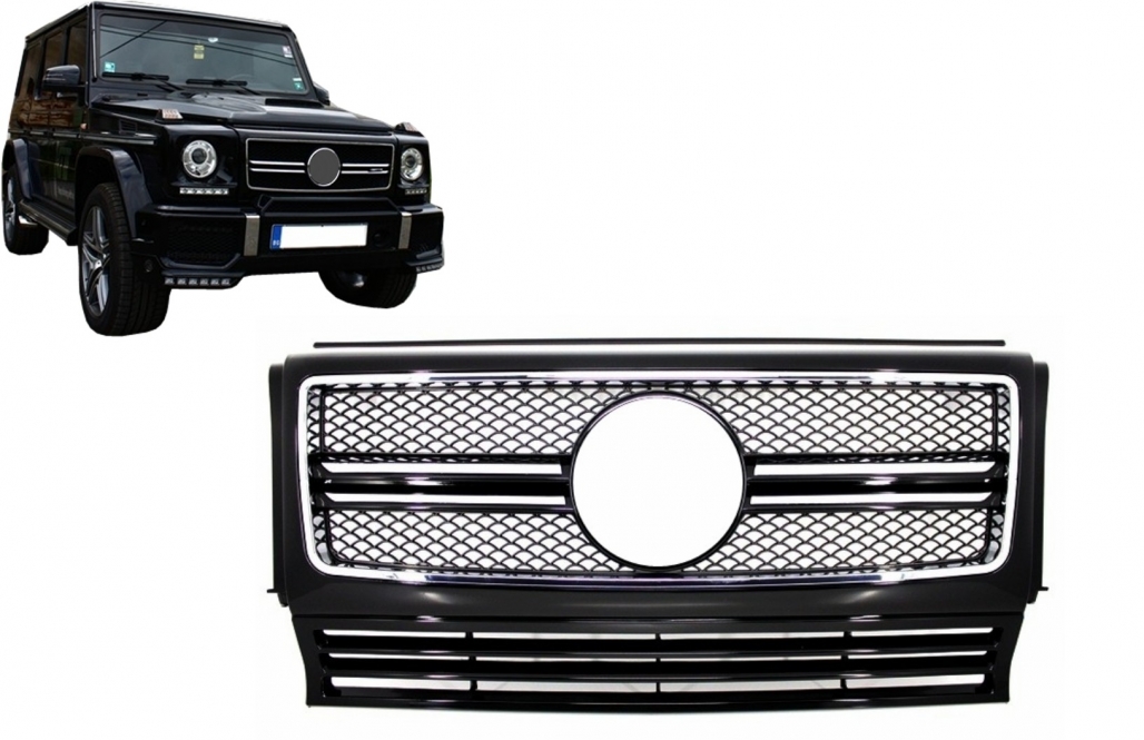 Utilizare: recomandată pentru echiparea sau înlocuirea grilei frontale la modelele Mercedes G-Class W463 compatibile. Verifică atent compatibilitatea înainte de comandă, în funcție de anul de fabricație și echiparea vehiculului.