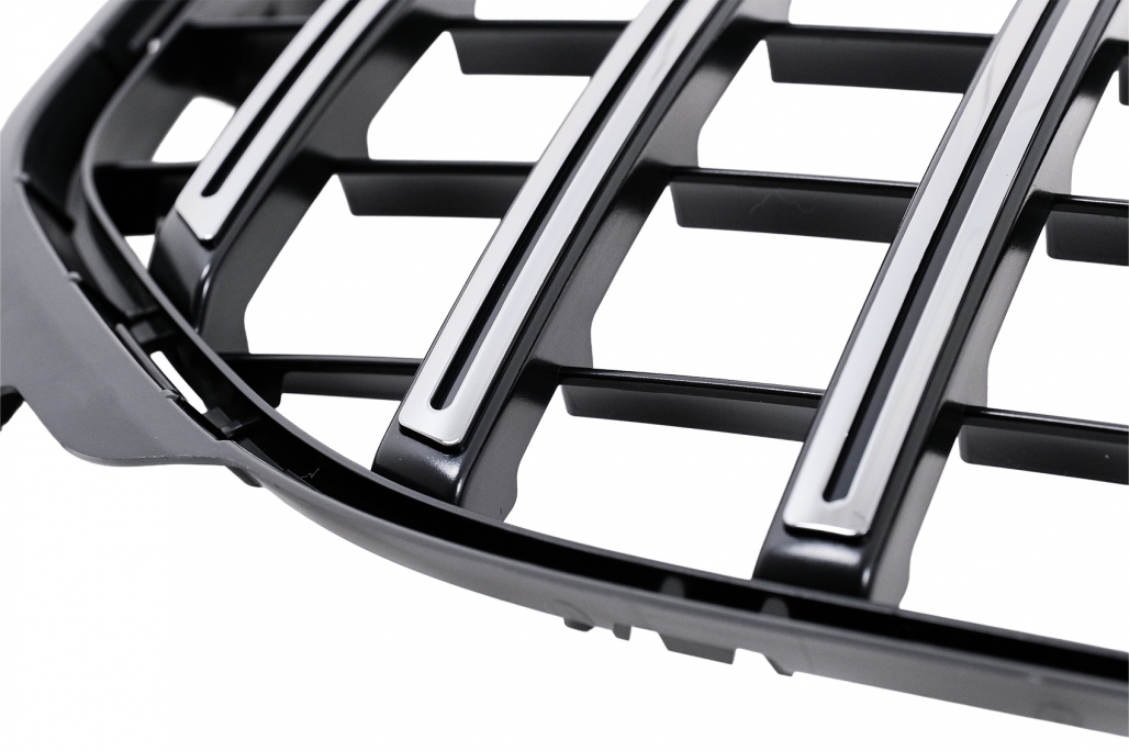 Grila centrala GT-R Panamericana Design Grila este fabricata din plastic ABS de cea mai buna calitate Finisaj: Negru Lucios cu dungi Cromate