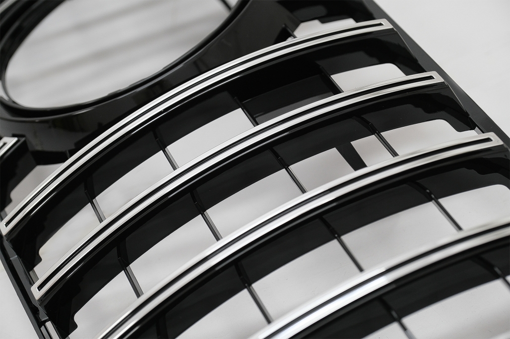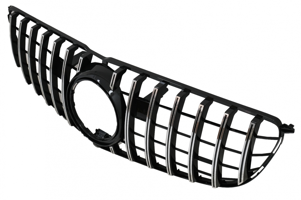 Fabricată din plastic ABS de calitate superioară, grila este concepută pentru o bună rezistență în utilizarea de zi cu zi și pentru un finisaj atractiv în combinație negru cu chrome. Modelul este compatibil cu siglele standard și cu sistemul distronic, iar zona pentru cameră este prezentă.