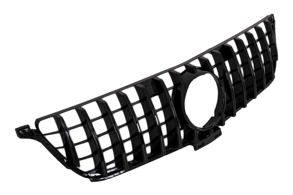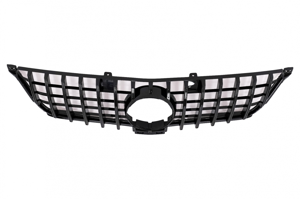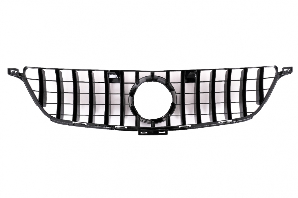 Grilă centrală pentru Mercedes ML-Class W166 (2012-2014), cu design Panamericana GT-R și finisaj negru lucios. Realizată din plastic de calitate, oferă un aspect sportiv și elegant părții frontale. Ideală pentru upgrade estetic sau înlocuirea grilei originale.
