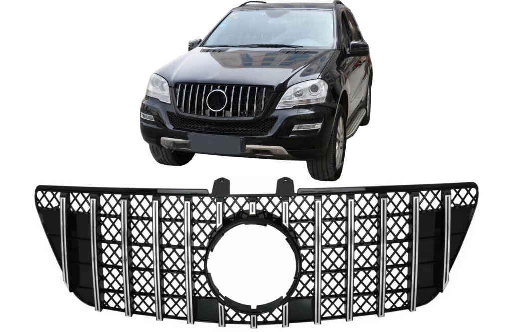 Grilă centrală Mercedes ML W164 Facelift, negru crom, design Panamericana