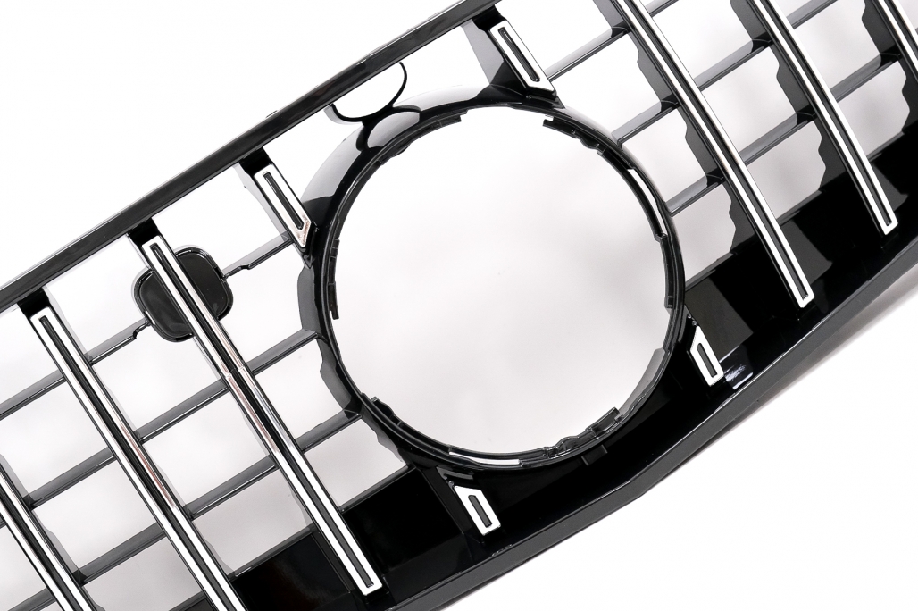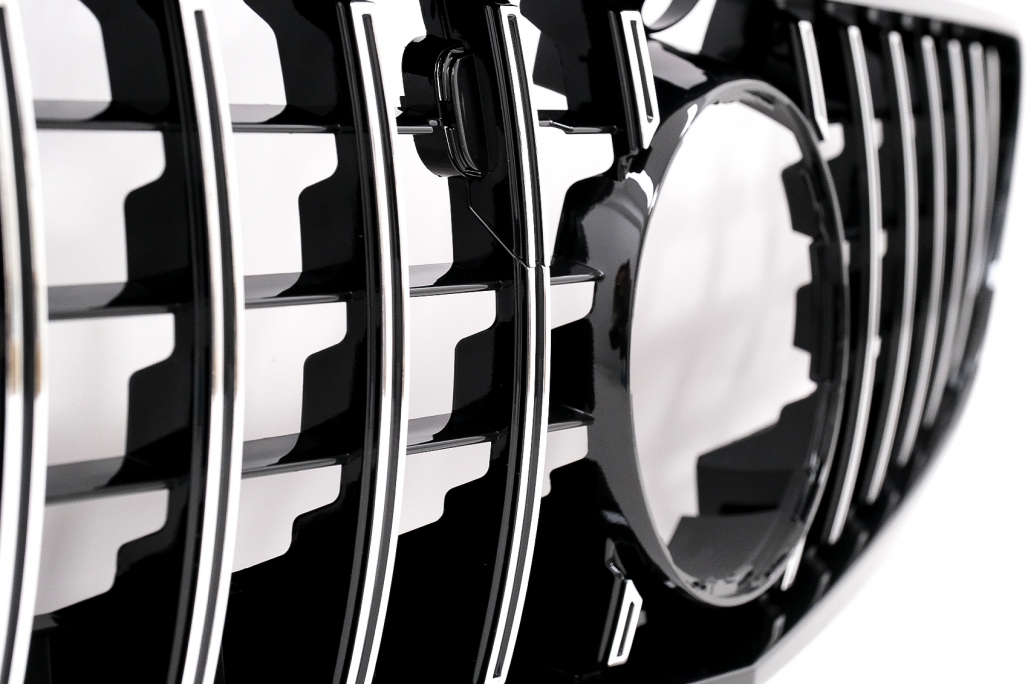 Oferă mașinii tale un plus de personalitate cu această grilă centrală Mercedes S-Class C217 A217, realizată în stil Panamericana. Designul cu lamele verticale și inserții cromate evidențiază partea frontală și creează un aspect sportiv, elegant și modern, inspirat de modelele de performanță.