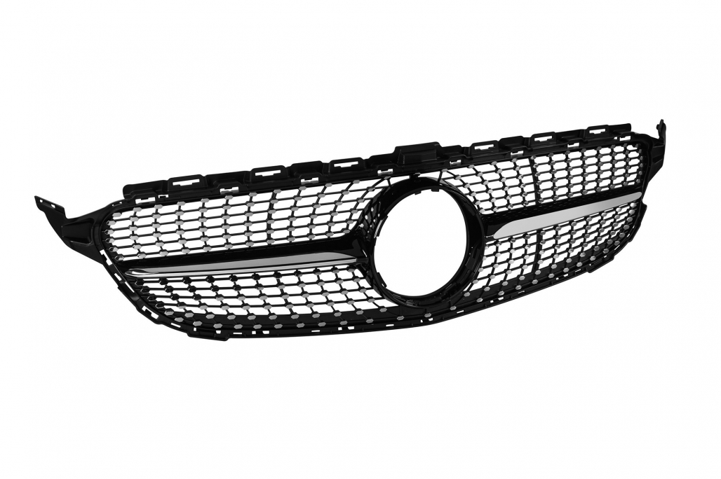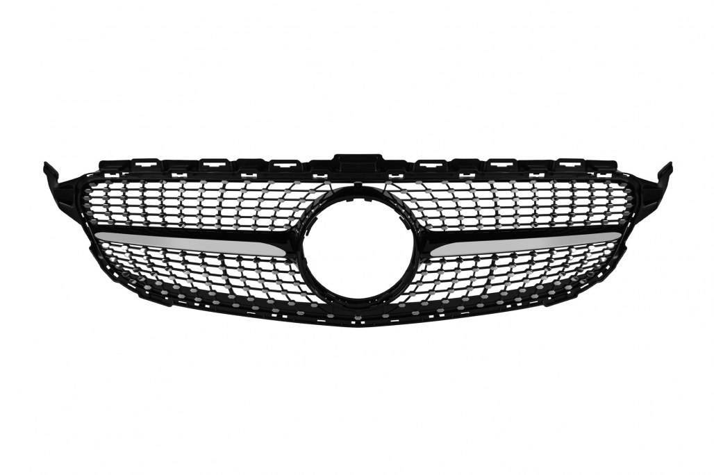 Grilă crom/neagră cu diamant, potrivită pentru Mercedes C-Class W205 sedan, S205 break, C205 coupe 2014-2018 fără deschidere pentru cameră Performance AutoTuning